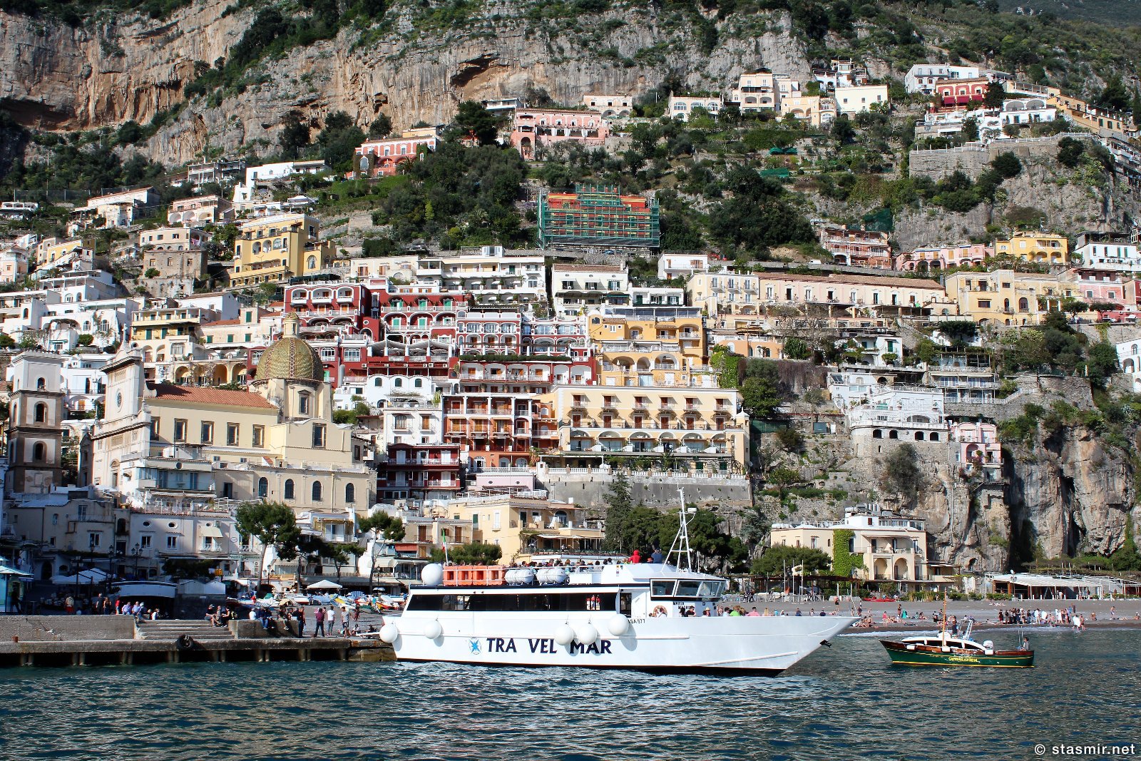 Попробуем констатировать увиденное и услышанное в этот день. Работая в отеле, могу выделить среди отдыхающих категорию, которые, имея возможность провести в Позитанкино всего один день, считают своим долгом присутствовать здесь как минимум 36 часов, то есть отправляются в ночь с пятницы на субботу в долгое и изнурительное путешествие по пустующим автострадам из далёкого далека, типа из Коссано Канавезе, где-нибудь в 700 км от Позитанкино, и прибывают с довольной улыбкой к тебе на ресепшен в 8 утра, вот мол какие мы хитрые, всех опередили, давайте нам наш номер. А если ты им номер по вполне вероятным причинам дать не можешь в такую рань, то коссаноканавезе смотрит на тебя с недоумением обиженного ребёнка и начинает возмущаться, дескать, вечно у вас тут так, на вашем отсталом юге. Наш юг – он, как и все юга в мире, оставляет желать лучшего с точки зрения производительности и эффективности, зато всем даёт очко вперёд по гостеприимству, теплу (не только по Цельсиусу) и жизнерадостности, поэтому хочется иметь дело с туристами, которые умеют это ценить и приезжают в Позитанкино, не претендуя на от уличного продавца граниты безупречного английского или от водителя местного автобуса – офисного галстука. Товарищи, мы здесь расслабляемся и вам того же советуем! Кстати о граните (разумеется, речь идет о свежем лимонном лакомстве, а не о минерале) — будете в Позитанкино, обязательно остановитесь в центре, на крошечной площади Дей Мулини у уличного лотка в виде носа лодки, его хозяйка Мария Антониетта готовит ну совершенно замечательную граниту по-домашнему рецепту.