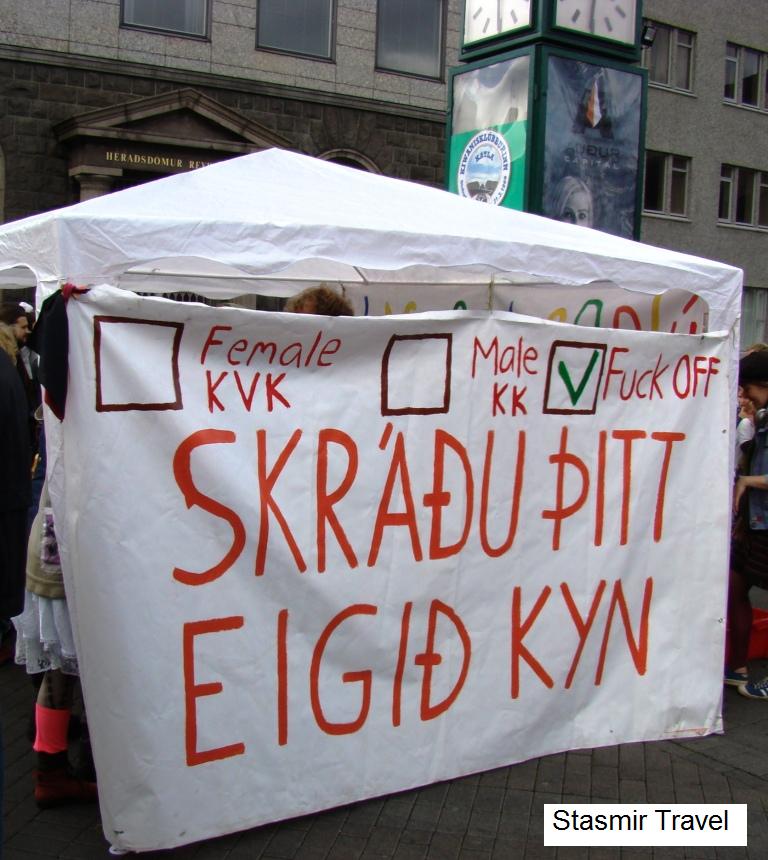 Испугавшись собственной категоричности в суждениях, я задумался, почему мне это шествие так не понравилось. Понял, что неискренностью. Одиннадцать лет назад был свидетелем первого такого парада в Рейкьявике. Он прошел с бешеным успехом и с неким надрывом, выкриком, всплеском, который всегда образуется, когда что-то долго не замечают, не признают, не разрешают, а потом выпускают в небо раскрашенным змеем. Лет через несколько мой исландский приятель Рагнар уже язвил по поводу табличек «Homma Tilboð» на гейский праздник во всех питейных заведениях города – типа: «два пива по цене одного, если вы гей». „Интересно – рассуждал он, – гейство каким-то образом надо доказать, причем бармену, или достаточно на момент отпуск пенного напитка помахать радужным знаменем?“ Прошло еще несколько лет. Я наблюдал очередной марш меньшинств со своими туристами: стало похоже на семейный праздник-карнавал, где детишки при виде всего этого попугайского великолепия лопочут счастливым родителям: «Когда я вырасту, я тоже стану гейем». Конечно, малыш, но для этого надо много и хорошо учиться… Наконец, нынешний раз, когда мне все уши прожужжали о том, какой важной международной вехой стал рейкьявикский гей парад. Конечно, но тогда и шоу должно быть феерическим, и организация безукоризненной, и дух Фредди Меркьюри витать и парить над действом, достойным «Цикр дю Солеи», а тут какие-то усталые вихляния с дикой давкой и распродажей сосисок под нелюбимые с детства песни.