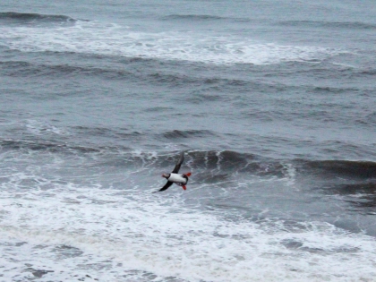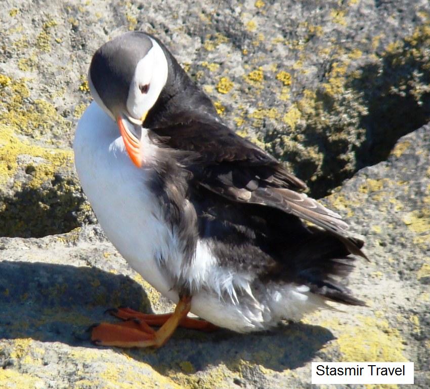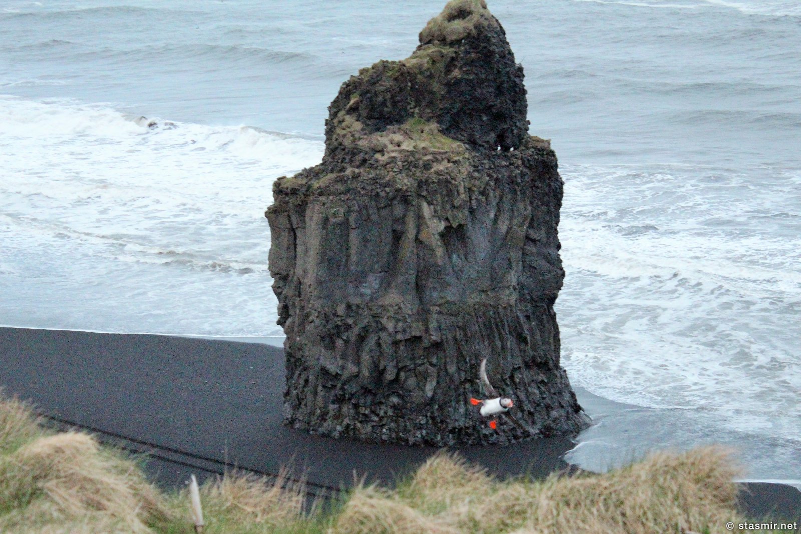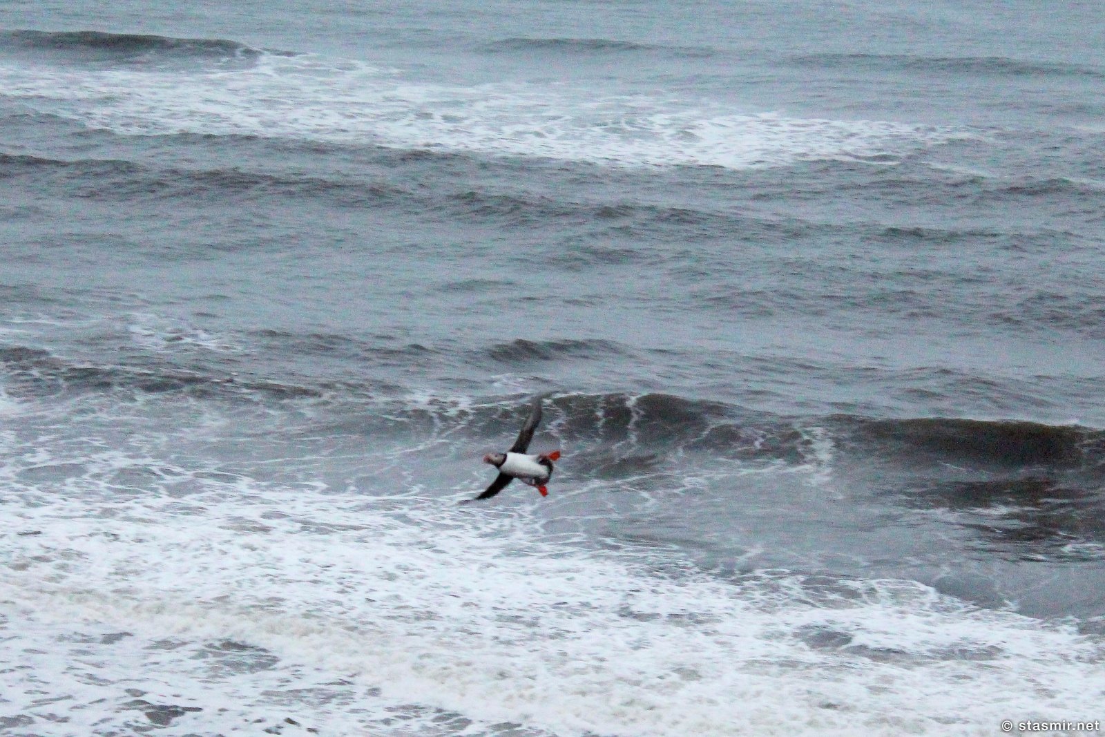 Из прочих талантов коротышек-паффинов нередко отмечается способность развивать скорость до 80 км в час, причем я убежден, что данные ошеломляющие тактико-технические характеристики применимы скорее к свободному падению с заоблачных высот, чем к траектории взлета. При осмотре тупиков с моря в ходе морских круизов в различных тýпиковых зонах Исландии никакого аэродинамизма в их суетливом беге от парохода не наблюдается: напротив, они разгоняются медленно и неуклюже, как жирные мухи, суетливо бултыхая короткими крылышками (400 ударов в минуту!). Оригинальный способ приземления этой пичуги, впрочем, действительно может способствовать развитию немыслимых скоростей, ибо для совершения посадки тупик просто перестает лететь! На суше это приводит к комичному камнеподобному низвержению с небес с последующим кубарем качением – этакая каскадерская клоунада. А в воду тупики ныряют уже прицельно, оранжевым шнобелем вниз, сгруппировав каждое перышко для достижения бобмово-торпедной динамики. Потому и под водой, говорят, они преодолевают еще метров 60, добывая пропитание – малюток хека, мойвы, сельди и прочую океаническую шелупонь, которую затем несут по воздуху тупикинятам в объемных клювах.