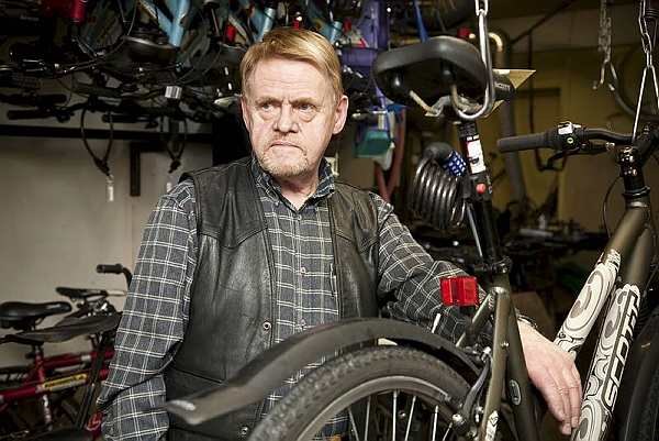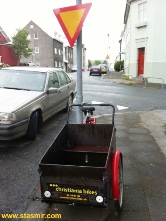 Именно на этой «опасной» улице почти 30 лет назад открыл свою велосипедную мастерскую… Рунар. Будем называть его так, хотя на самом деле имя и фотография героя нашего повествования уже несколько лет гуляют по интернету так же интенсивно, как письма «юристов» из Нигерии, призывающих вас востребовать многомиллионное наследство вашего нигерийского дядюшки (у кого сегодня нет дядюшки в Нигерии?). В то время Исландия еще пережевывала американскую мечту, воплощенную в гамбургерах, ковбойских сапогах и плывущих над лавовыми полями несуразно больших «бьюиках», «шевиках» и прочих «генеральских моторах». Вéлик в эту картину мира не вписывался; он пришел в Исландию чуть позже из обкуренной датской Христиании вместе с экотуристами, привыкшими передвигаться на арендованных бисеклетах. Единственными обладателями велосипедов на весь город в этот период были я (из бедности) и Хрингур (по болезни) – странный человек с деформированным черепом и прической «ирокез», затянутый в черную кожу мотоциклиста. Выражение лица Хрингура, не блиставшего психологическим здоровьем, красноречиво свидетельствовало о том, что шансов получить водительские права у него не больше, чем увидеть собственный затылок под ирокезом. Но мужик он был отличный – и настоящий панк! Хрингур любил пугать своим видоном туристов, а еще кружить на вéлике вокруг «взрослых пацанов» на «харлеях», великодушно принимавших его в свой суровый мужской круг.