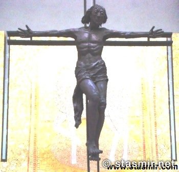 В третьем послании Матери Божьей речь шла, скорее всего, о грядущем покушении на Иоанна Павла II, которое произошло в 1981 году. Понтифик в последний момент увернулся от пули, увидев в руках девочки из толпы образ Фатимской Богоматери, которая спасла ему жизнь, но не избавила от тяжелого ранения. Этому событию посвящена экспозиция в Церкви Пресвятой Троицы – четвертому по величине католическому храму в мире. Признаюсь, я не люблю золоченые иконостасы, а пухлых ангелочков в барочных рюшечках, населяющих католические храмы, жалую еще меньше. Аскетизмом и простота убранства Собора Пресвятой Троицы, больше похожего на памятник героям Великой Отечественной или лютеранскую кирху, чем на католический храм, произвели на меня сильнейшее впечатление. Думаю, что я не первый посетитель из России, о которой так много сказано в контексте Фатимы, кто отметил сходство скуластого по-воробьиному нахохлившегося Христа на распятии с Владимиром Высоцким: «Я не люблю насилия и бессилия, Вот только жаль распятого Христа».