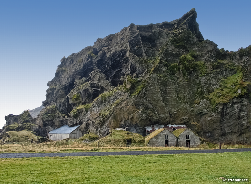Подобные пещерные образования характерны для южного побережья Исландии. Прямо в них встраивались как обычные дерновые землянки, так и более современные сооружения. Одна из таких пещер фигурирует в фильме исландского режиссера Храпна Гуннлёйгссона «When the Raven Flies» (1984) — первой ленте из популярной кинематографической саги, посвященной эпохе викингов.