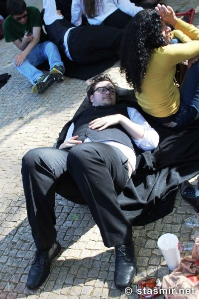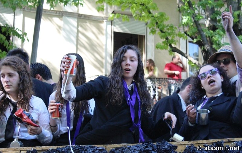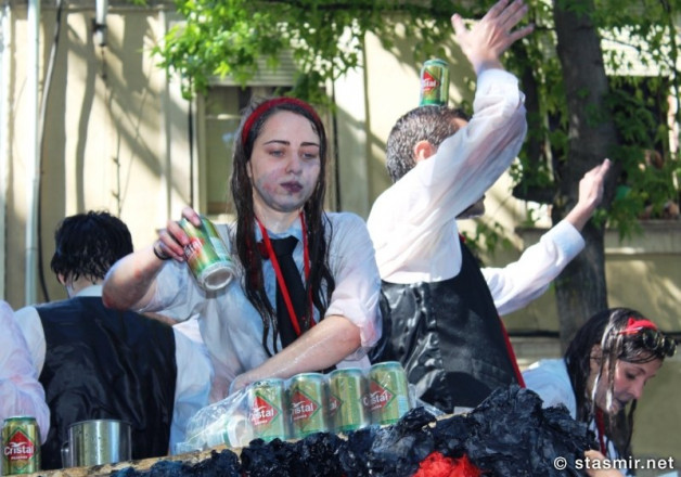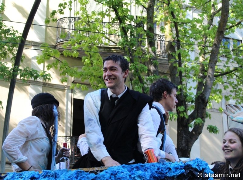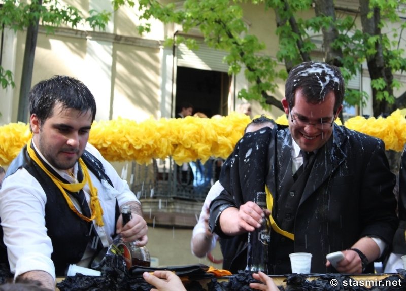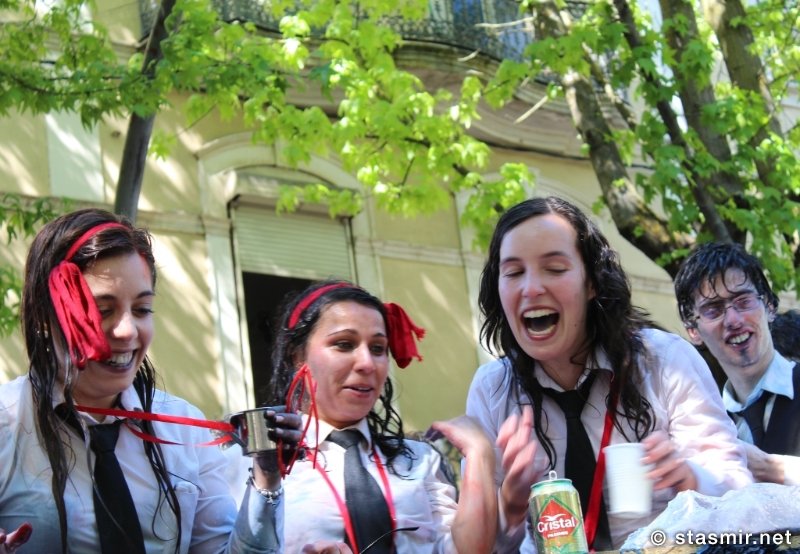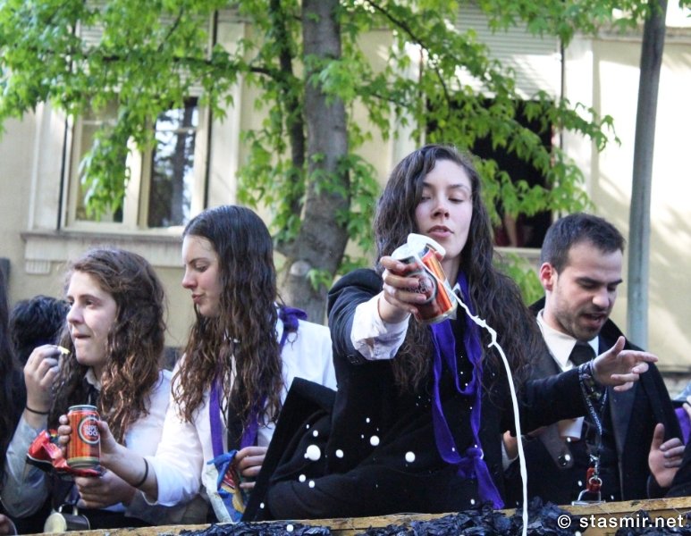 Черные студенческие плащи, кстати, имеют ряд утилитарных применений. Ближе к концу парада «флоташ» я наблюдал, как на них утомленно валились прямо средь устланной пустыми банками мостовой «освобожденные» алкоголем студенты.
