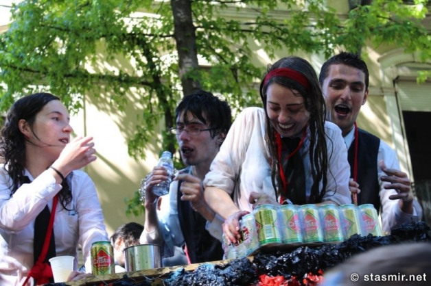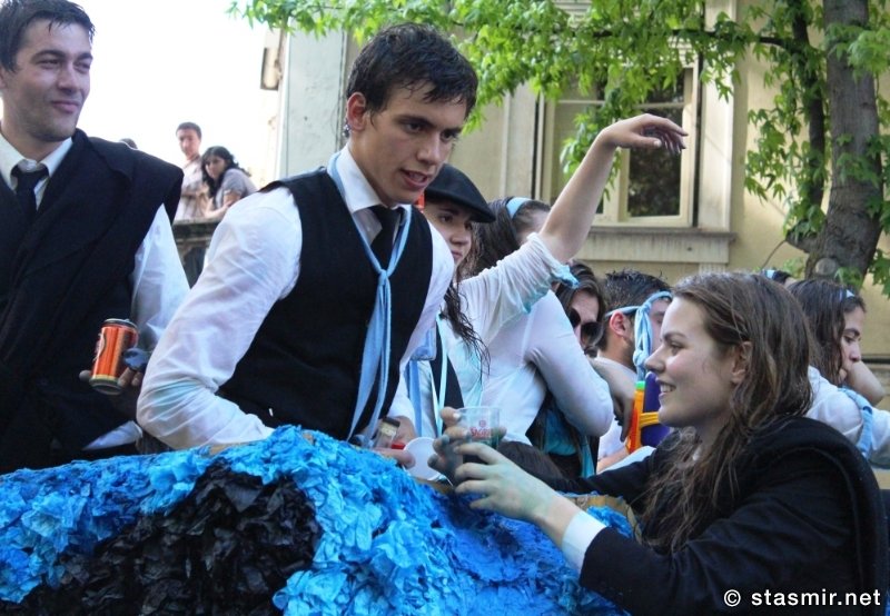 Можно посетовать на высокое потребление алкоголя, а можно просто порадоваться за юных (и не очень) студентов. Праздник все-таки великий и, несмотря на некоторый надрыв, радостный. Они же не морду друг другу бьют, а глядят в будущее сияющими надеждой глазищами! Будущее, безусловно, есть у всех – пусть не всегда такое, как хотелось бы. А уж кто там чему научился и кем будет работать – дело десятое.