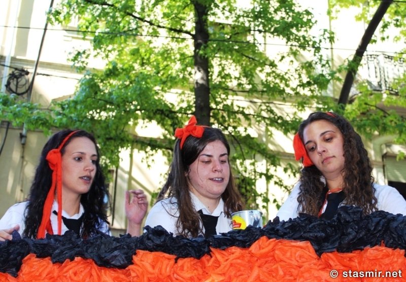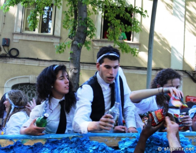 Я наблюдал, как катились мимо раскрашенные «плоты», периодически ловя щедро раскидываемые банки пива. Пустые банки устилали мостовую. Со многих плотов лилось уже не пиво, а крепкие напитки. Мне приходилось наблюдать так называемый «binge drinking» среди студентов Миннесоты на Среднем Западе США. Там в день алкогольного совершеннолетия (21 год) случаются гибели от спиртоносных напитков. Но потомки скандинавов, обитающие в холодном климате, располагают здоровой сопротивляемостью, а вот когда молодые винопийцы-иберийцы переходят на черную водку и «медрониевку», становится тревожно. Пронизывающий веселье вой сирен скорых подтверждал обоснованность моих опасений.
