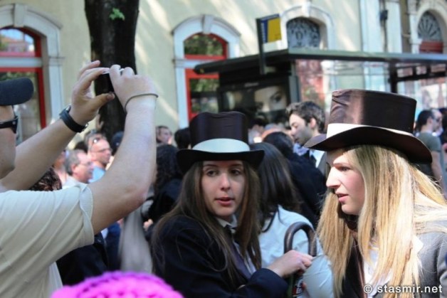 Студенты были одеты в академические черные мантии с пришитыми к ним ленточками с пожеланиями, которые были выполнены в цветах соответствующих факультетов. Незадолго до начала церемонии шествия некоторые вечно опаздывающие индивидуумы торопливо пришивали ленточки к плащам.