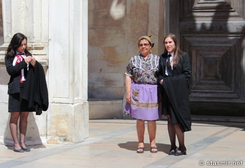 Университет Коимбры – главный в лузофонском мире. В нем обучается множество студентов из Бразилии и Африки. На улицах царило города характерное для Португалии смешение рас и поколений. Высушенные безжалостным солнцем низкорослые люди крестьянской наружности в традиционном платье соседствовали в толпе с высоченными португальцам евросоюзовского образца, рожденными если не с серебряной ложкой, то уж точно с каким-нибудь «айпадом» или «айфоном» в зубах. Многолюдные португальские семьи фотографировались со своими отпрысками-студентами, другие вели их в ресторан, чтобы поздравить в торжественной обстановке. Представляю, как гордится столетняя крестьянская бабуля своей внучкой, которая почти получила диплом, скажем, маркетолога и теперь без презентации в «Power Point» и объяснить не сможет, чем надеется заниматься по жизни!
