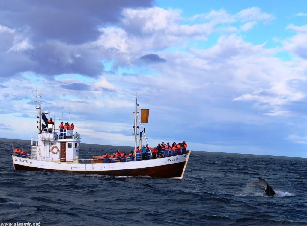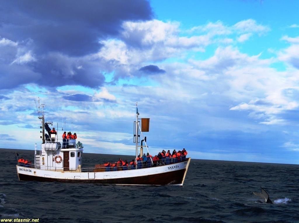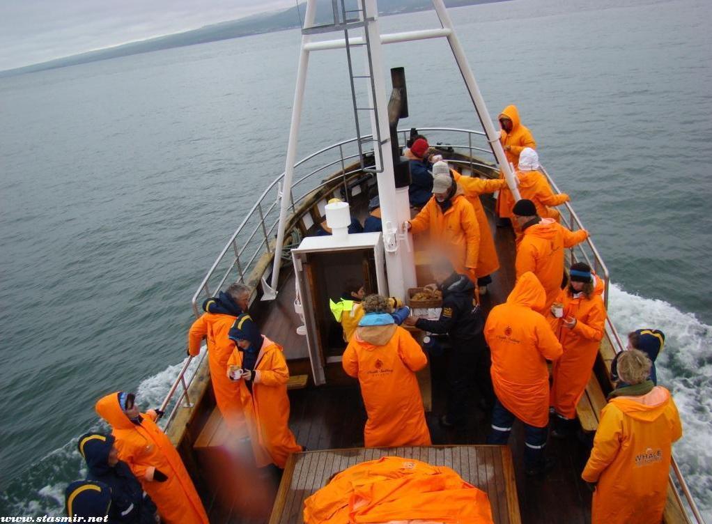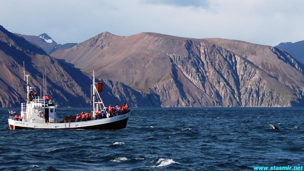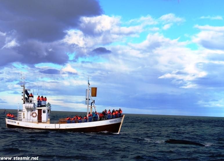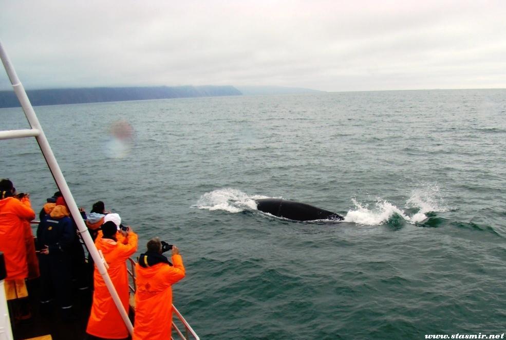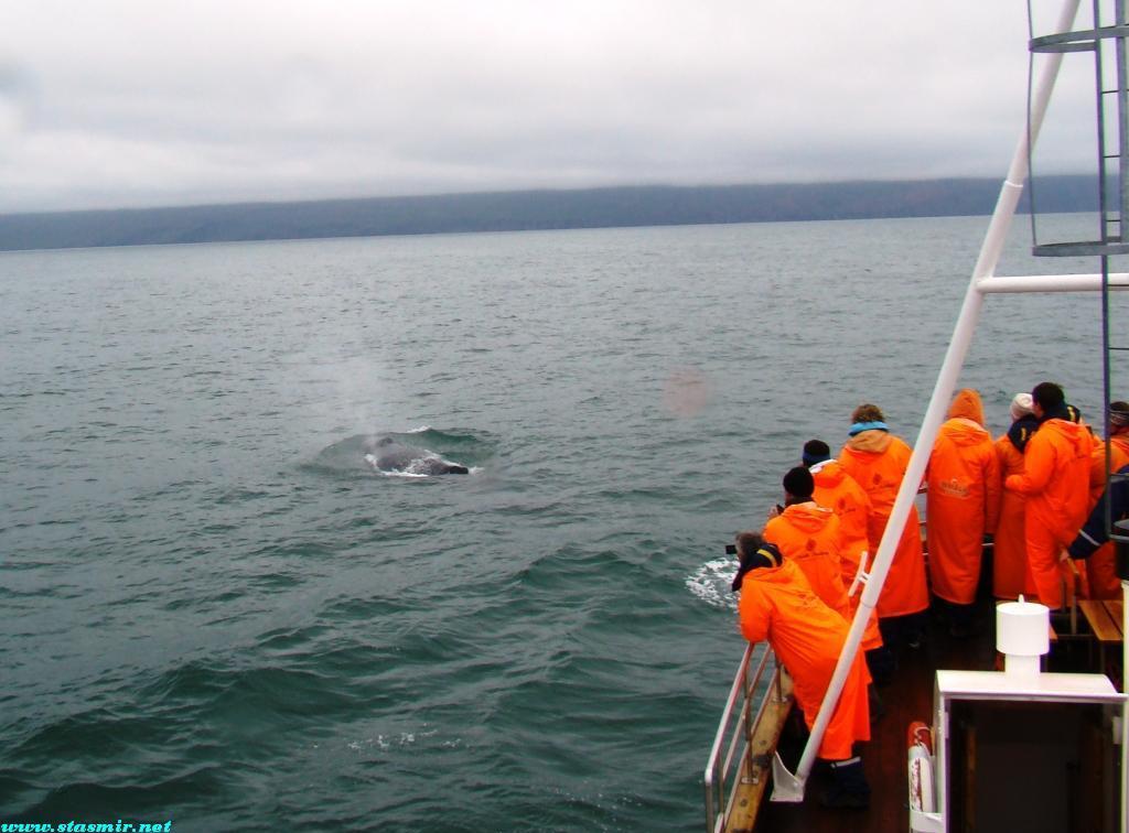 Иногда мы ночевали в Хусавике – «мировой столице осмотра китов», а иногда только заезжали в этот городок. Неизменным было то, что из Хусавика мы отправлялись наблюдать китов, хотя в обязательную программу это не входило. Я добросовестно предупреждал туристов, что над фьордом часто висит непроницаемый туман, что временами удается увидеть лишь непристойно задранный китовый хвостик, что знакомство с китообразными в условиях дикой природы отличается от посещения дельфинария. Но так устроено, что чем больше человека отговариваешь, тем сильнее ему хочется. Поэтому мои мини-группы обычно в полном составе грузились на борт кито-смотрового судна, предварительно закидав меня вопросами о погоде, качке и собственной простудопригодности в условиях Северной Атлантики.