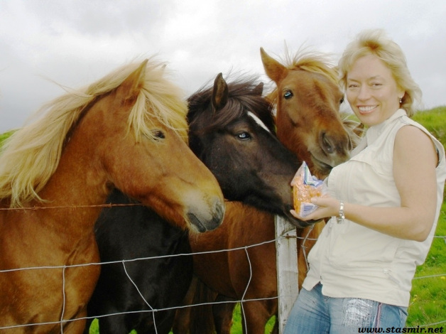 Есть вопрос, который не устают задавать туристы: зачем исландцам столько лошадей, и какая от них практическая польза? Это – как спрашивать у россиян, зачем им личные автомобили и какой от них прок в круглосуточно запробкованых городах. Ответ очевиден: россияне «разводят» машины, потому что любят их. Вот и исландцы: разводят лошадей, потому что любят, а чтобы избежать лошадиных пробок, экспортируют. Помимо 80 тысяч лошадок в Исландии, еще 100 тысяч проживают на чужбине, в том числе 50 тысяч в Германии. Раз в году по осени исландские лошади применяются для сбора овец. Катают туристов. Участвуют в соревнованиях. Вот и вся польза! Мне представляется, что любовь исландцев к лошади происходит из благодарности: в суровых условиях острова человек не выжил бы без лошади. Не будь лошади, не было бы исландцев!