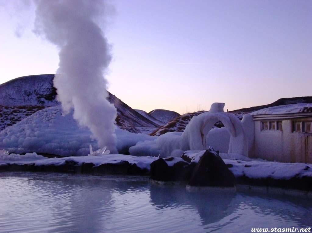 Познакомившись с этим удивительным животным в преддверии Года Лошади, мы смоем усталость в волшебных сине-зеленых водах термального курорта Голубая Лагуна. Вода в Лагуне поддерживается на уровне 39 градусов. Поскольку под пористой лавой, где ее добывают, проходит океан, вода на 65 процентов морская. Своим молочным цветом она обязана соединениям кремния, а лечебными свойствами – сине-голубым водорослям. Утверждают, что эти водоросли числятся среди древнейших организмов на планете, а воды Лагуны сродни тому «бульону», в котором образовалась жизнь. Мне Голубая Лагуна больше нравится зимой, чем летом: летом бывает жарковато, а народа многовато. А нежиться в Лагуне зимой, наблюдая северное сияние или кружение упоительно пушистых снежинок божественно приятно и вовсе не холодно. После Лагуны тело молодеет, душа наливается покоем, и спится как в детстве.
