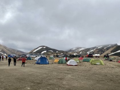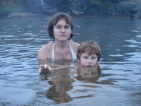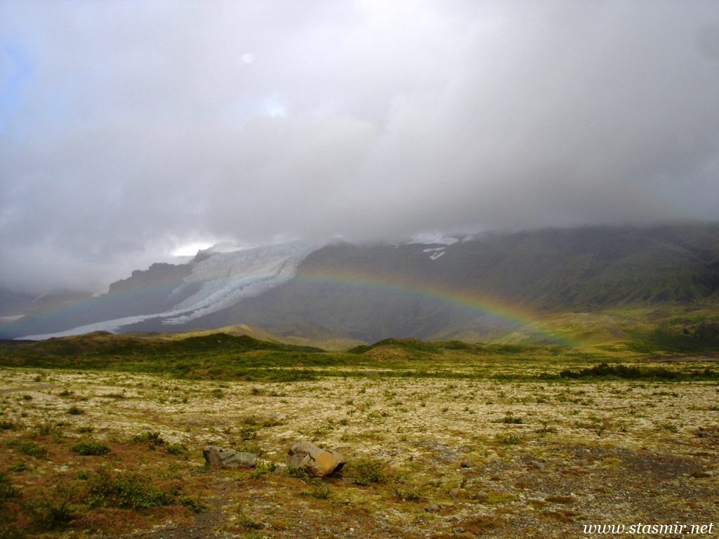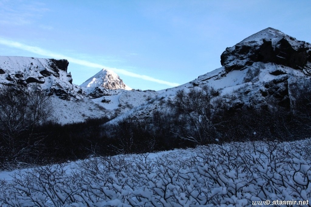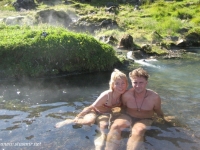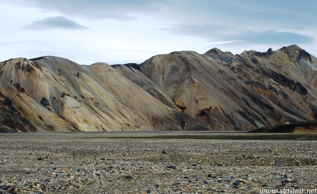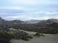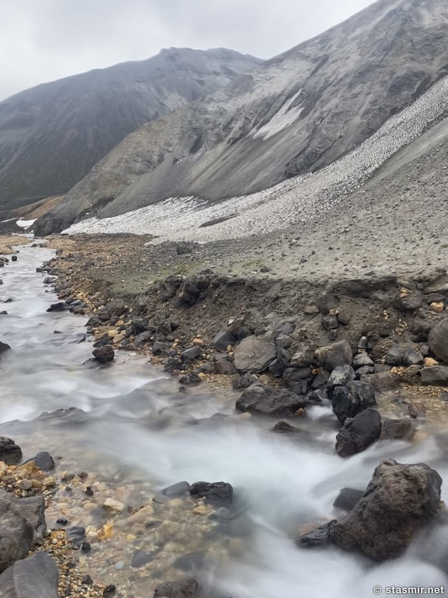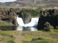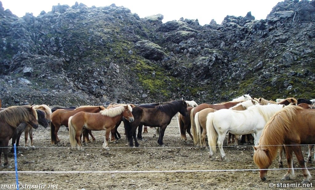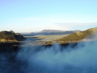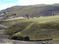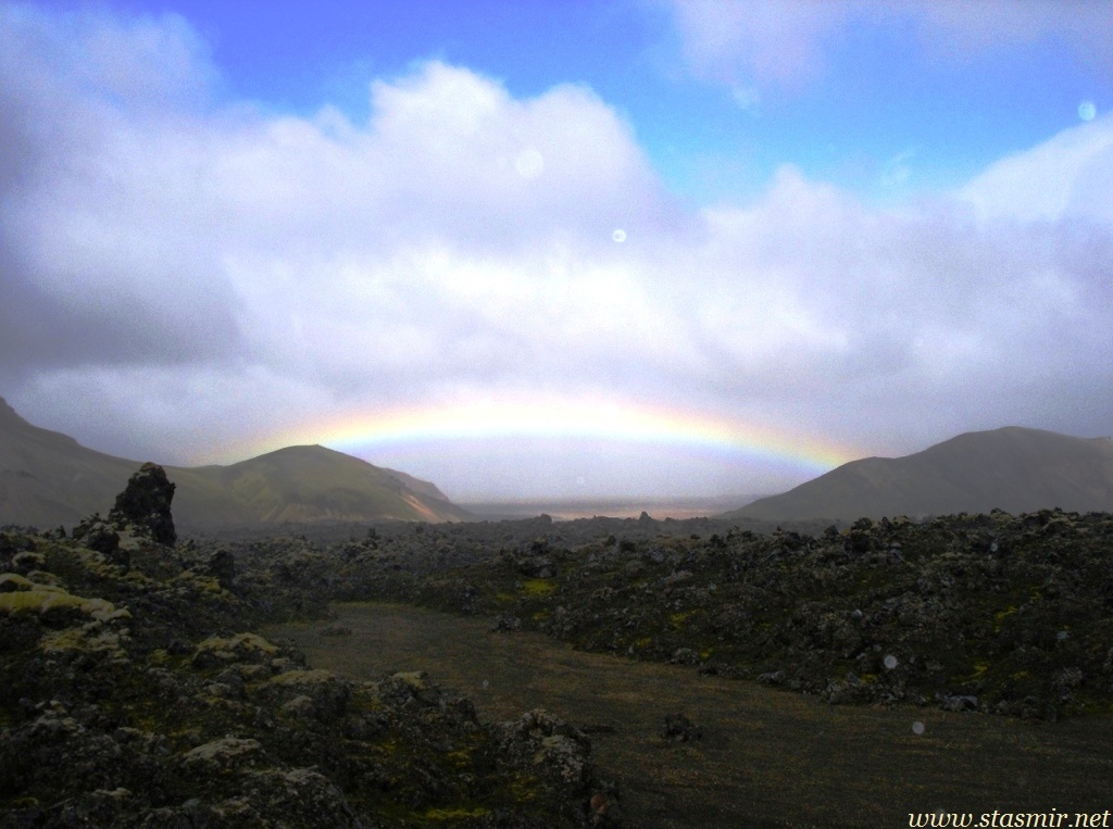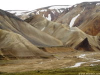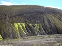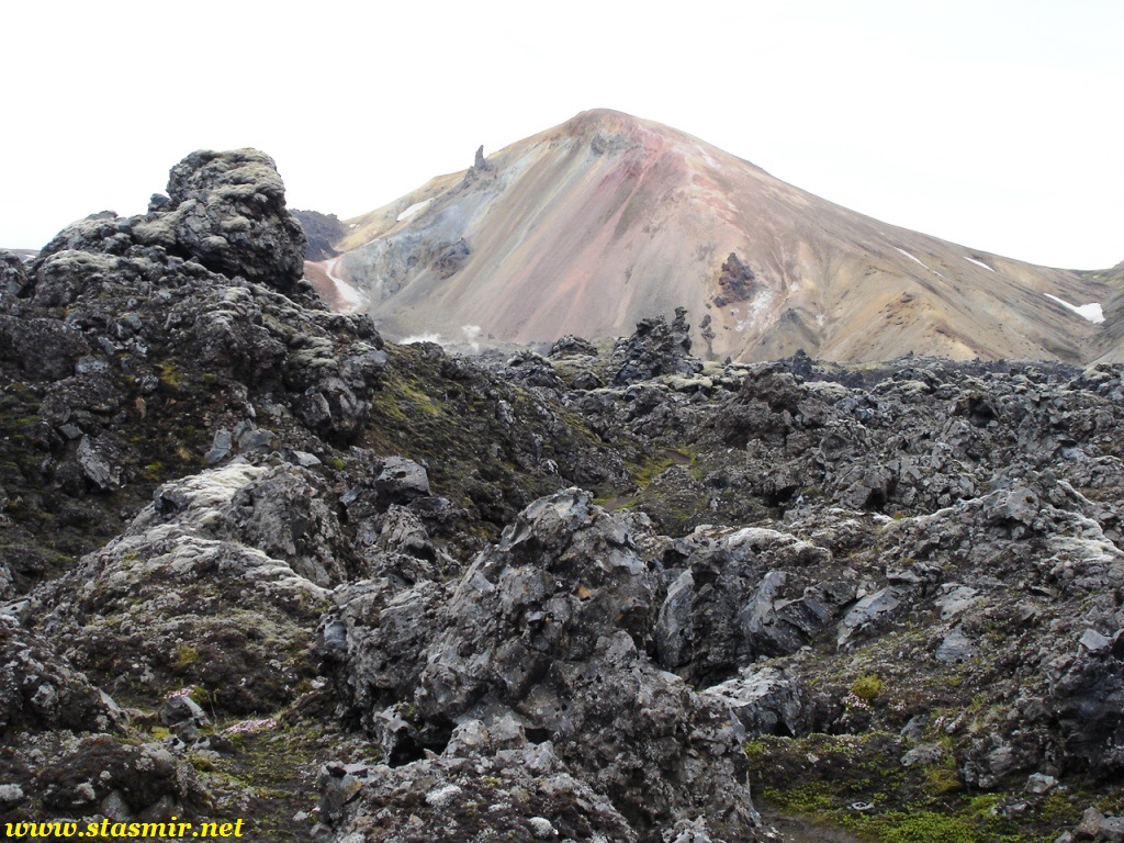 Есть и термальная речка – божественно расслабляющая, особенно в холодное время. Есть интересные места по дороге – предгорья Геклы – врата в исландский ад. Живописные водопады, которые не хочу описывать, потому считаю их своей тайной: не хотелось бы, чтобы туда приезжало столько людей, сколько ездит на Золотой водопад! Фантастические взрывные кратеры, которым исландцы дают нарочито «поэтические» имена – например, «уродская лужа». Каскады озер к северу от турбазы, где можно в полном одиночестве и за скромную плату ловит форель. «Исландские Помпеи» – ферма викинга, которую отрыли из под пепла, оставленного первым после заселения в Исландии человеком извержением Геклы. Голубые пики вдали. Тропа, названная как главная улица в Рейкьявике – Лёйгарвегур – «ручейковый путь». Она ведет от ручейков в Ландманналёйгар к перешейку между Эйафйатлаёкудлем и Мирдальсьёкудлем.