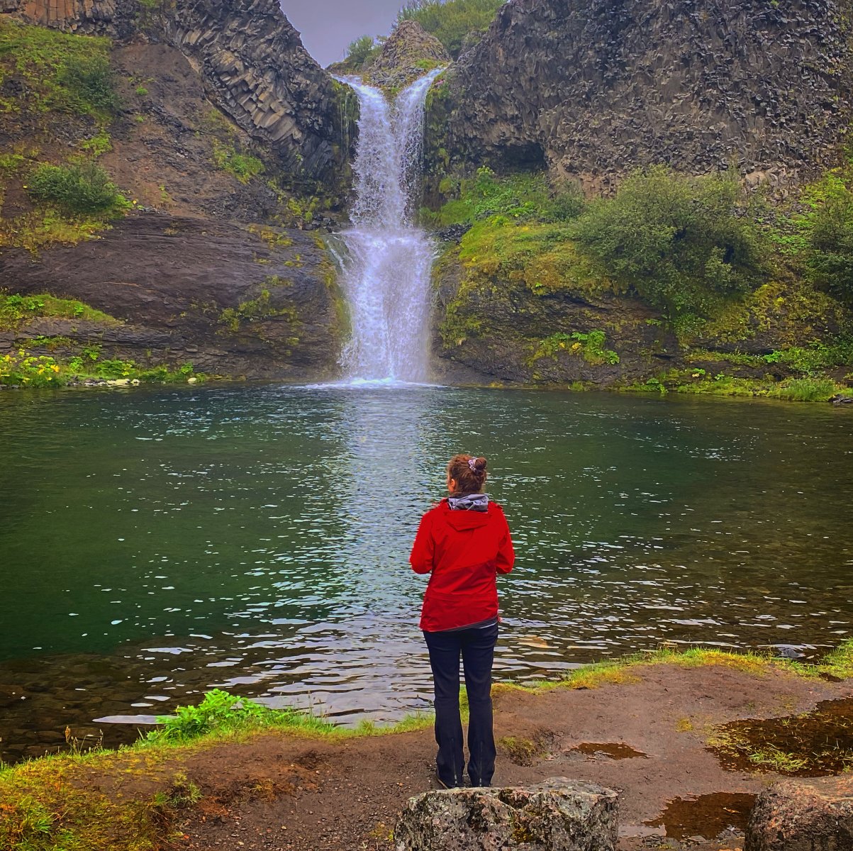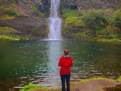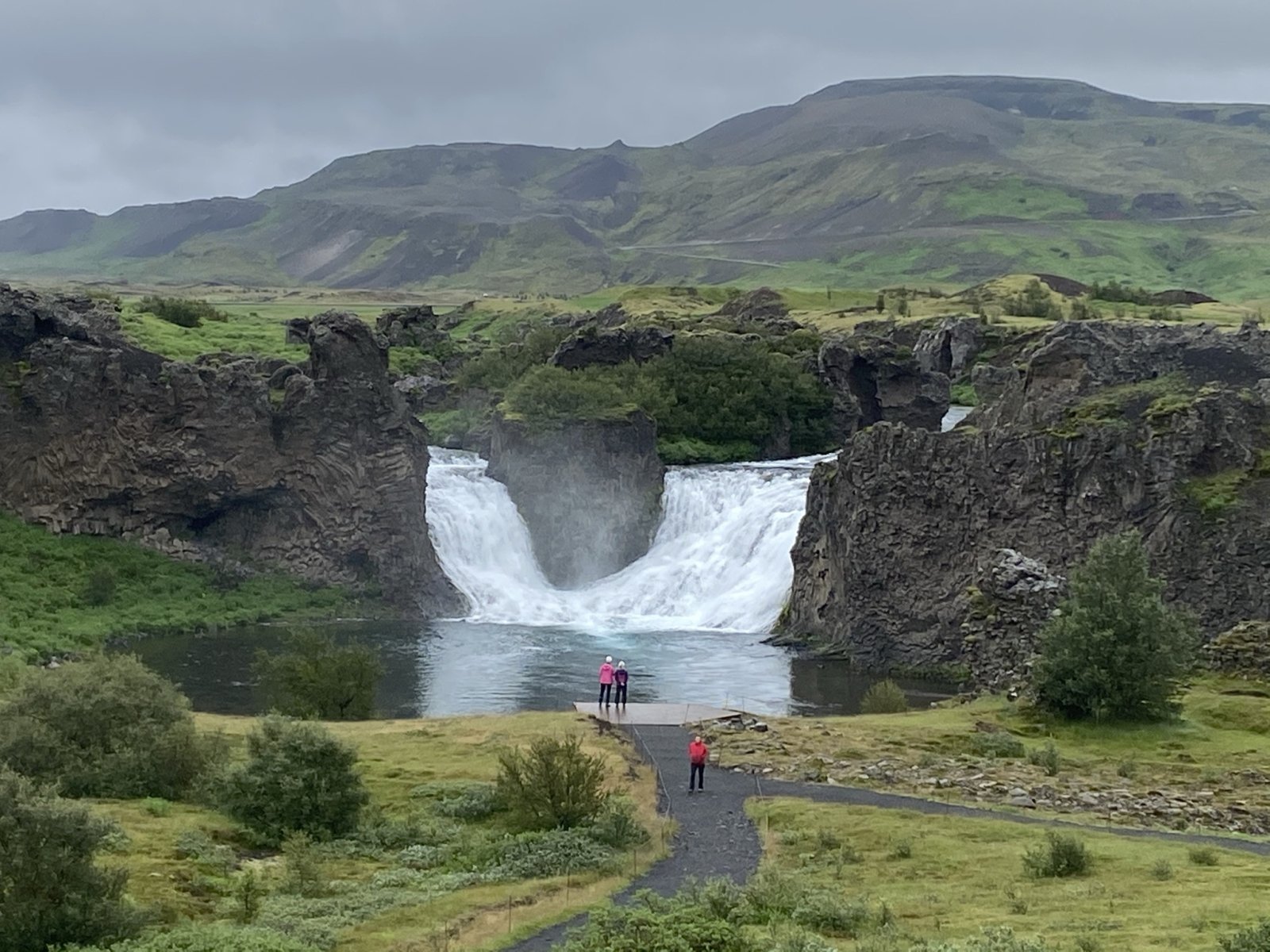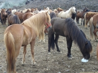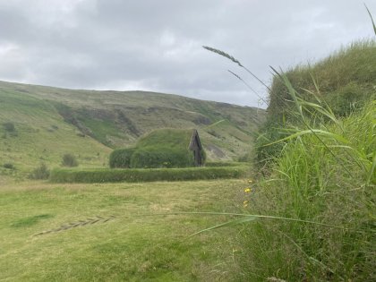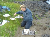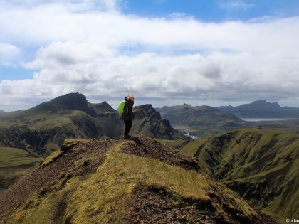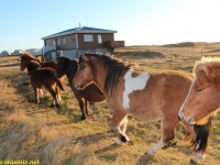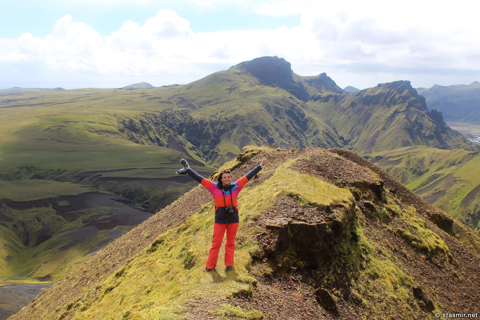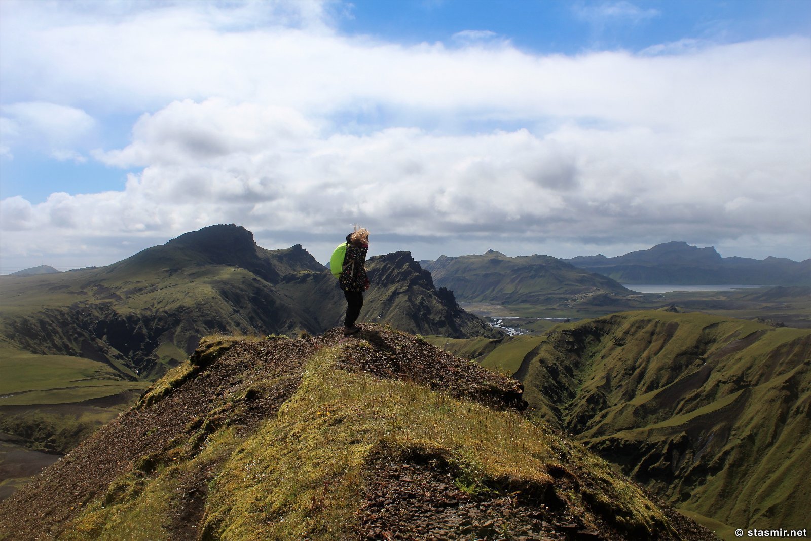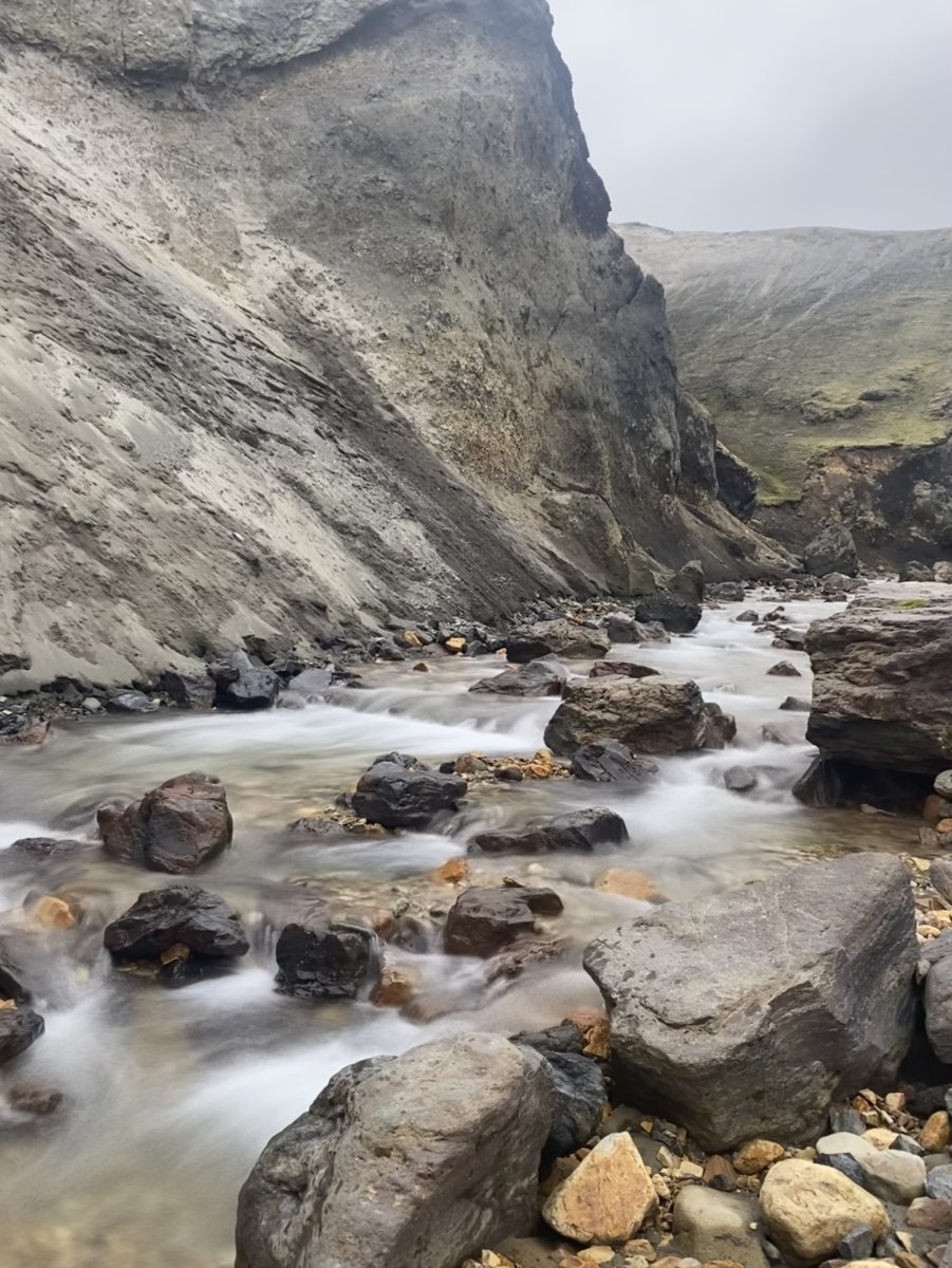 Есть и термальная речка – божественно расслабляющая, особенно в холодное время. Есть интересные места по дороге – предгорья Геклы – врата в исландский ад. Живописные водопады, которые не хочу описывать, потому считаю их своей тайной: не хотелось бы, чтобы туда приезжало столько людей, сколько ездит на Золотой водопад! Фантастические взрывные кратеры, которым исландцы дают нарочито «поэтические» имена – например, «уродская лужа». Каскады озер к северу от турбазы, где можно в полном одиночестве и за скромную плату ловит форель. «Исландские Помпеи» – ферма викинга, которую отрыли из под пепла, оставленного первым после заселения в Исландии человеком извержением Геклы. Голубые пики вдали. Тропа, названная как главная улица в Рейкьявике – Лёйгарвегур – «ручейковый путь». Она ведет от ручейков в Ландманналёйгар к перешейку между Эйафйатлаёкудлем и Мирдальсьёкудлем.