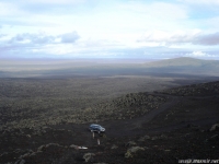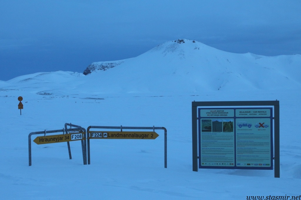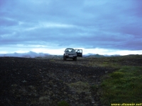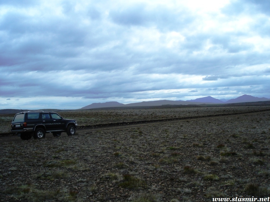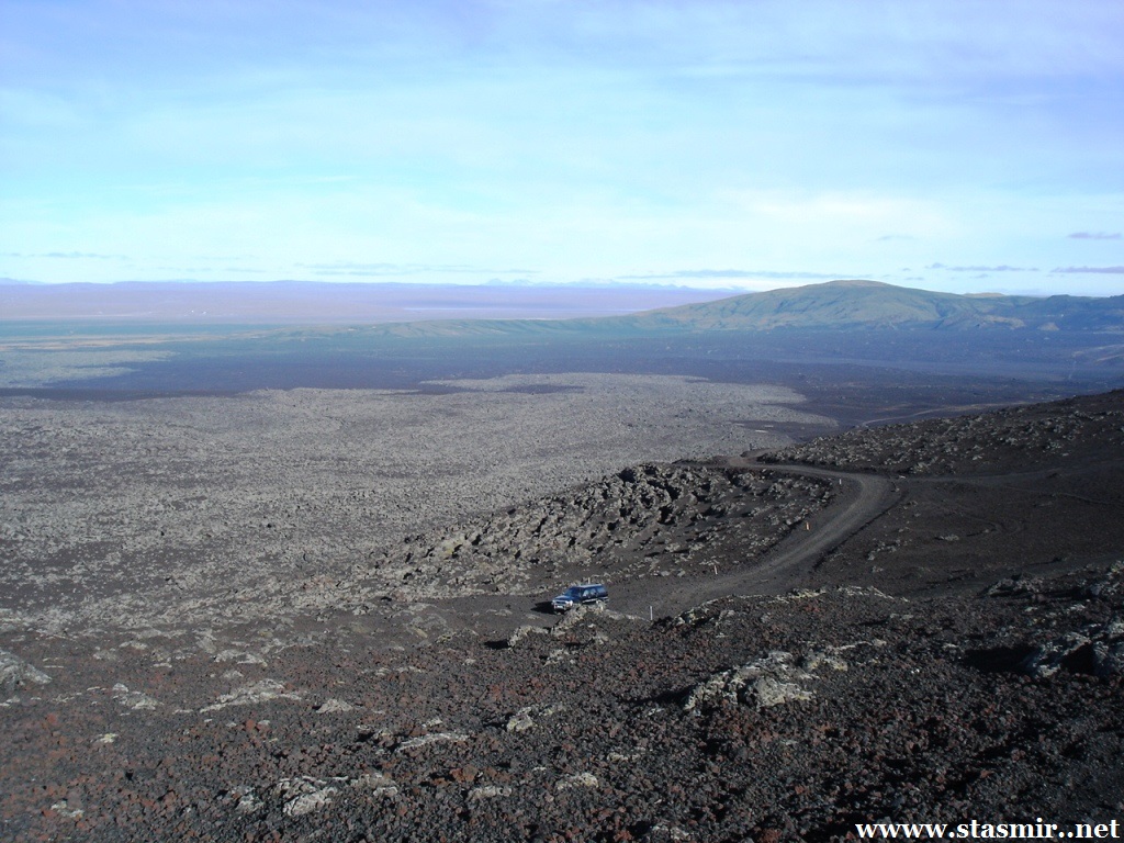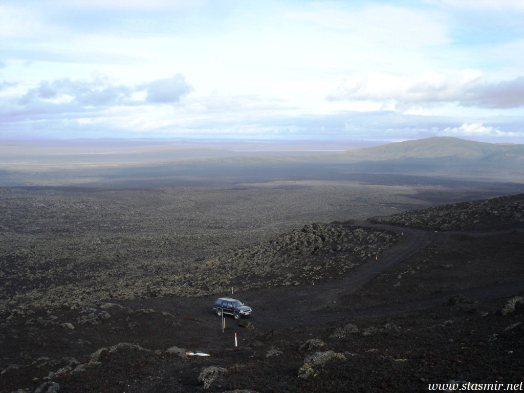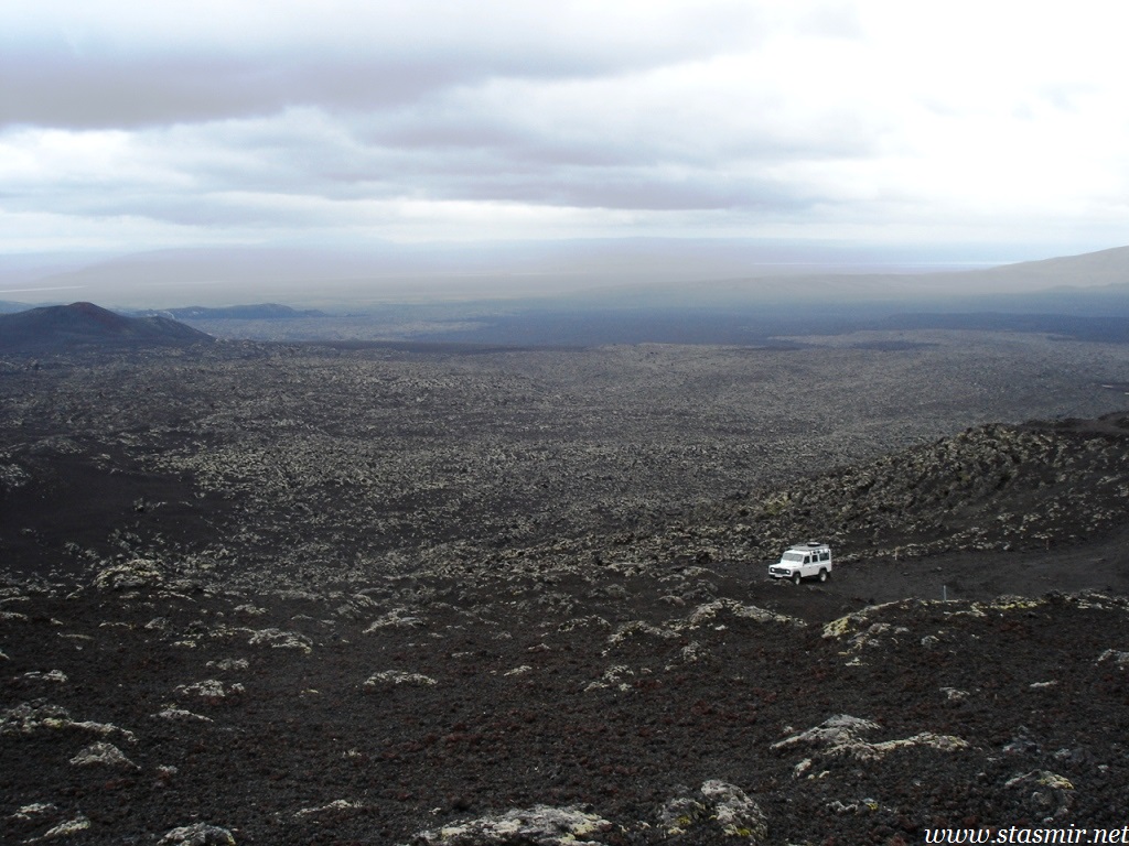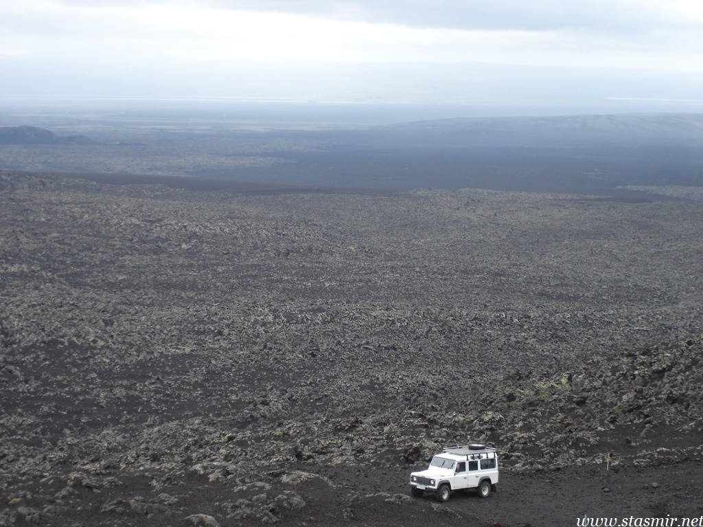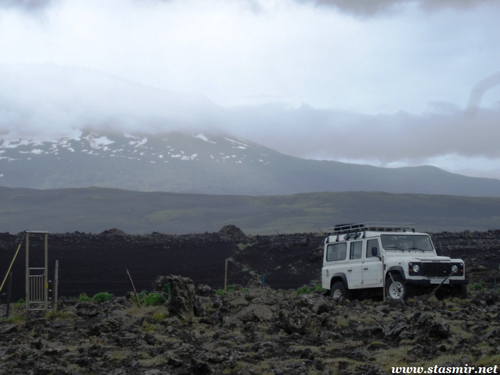 Мне удалось просушить брюки в барабане, предоставленном внимательными работниками высокогорного центра обслуживания Хрёйнэйар. Его название переводится как «островки лавы», но я бы назвал это место «островком среди лавы», ибо это последний форпост цивилизации на пути к Ландманналёйгар. Ботинки оставались мокрыми, но я надеялся просушить их в машине, пол которой горячел по мере того, как мы выходили на заснеженные просторы, не ступанные джиперами.