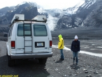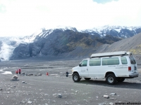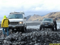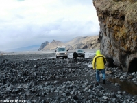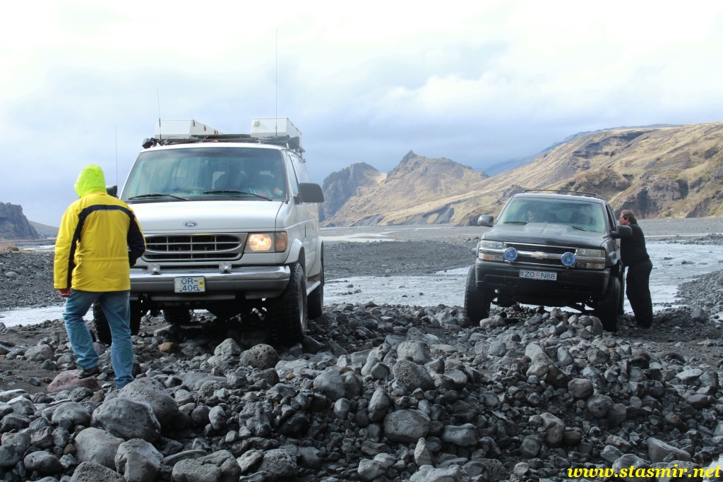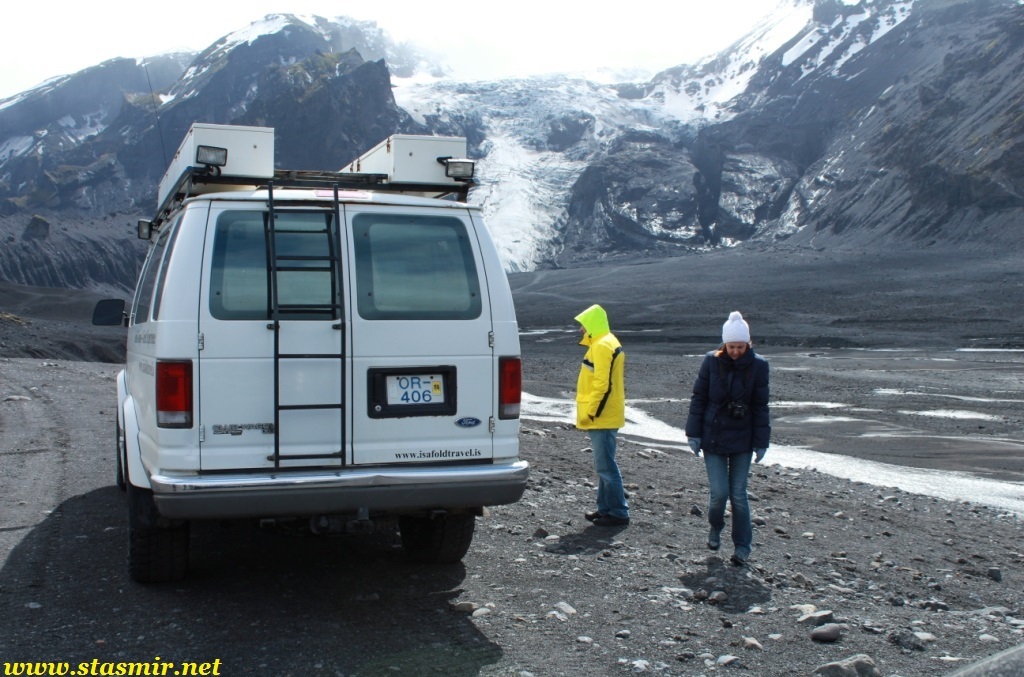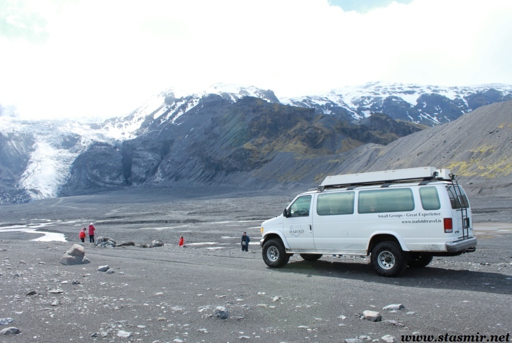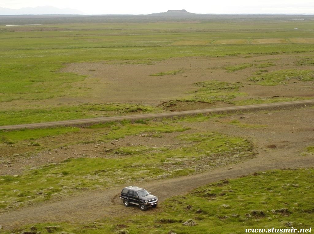 Вернувшись из параллельного мира трудовой миграции на свет дня у «южного» входа, я увидел, что мой водитель Крис мечется с телефоном вокруг нашего суперджипа фургонного типа, пытаясь выяснить, куда я запропастился. Крис мне сразу понравился: молодой и худощавый, он излучал ненавязчивый оптимизм, свойственный молодому поколению исландцев, и не донимал туристов глупыми вопросами о наличии медведей на улицах российских городов. Крис поведал, что большеколесный фургон принадлежит не ему, а фирме, выразил надежду, что у клиентов хорошая страховка, ибо он едет по маршруту в первый раз. Посмеявшись собственной шутке, Крис пообещал, что обязательно доберется до Ландманналёйгар, чтобы стать первым в этом году джипером, проникшим туда.