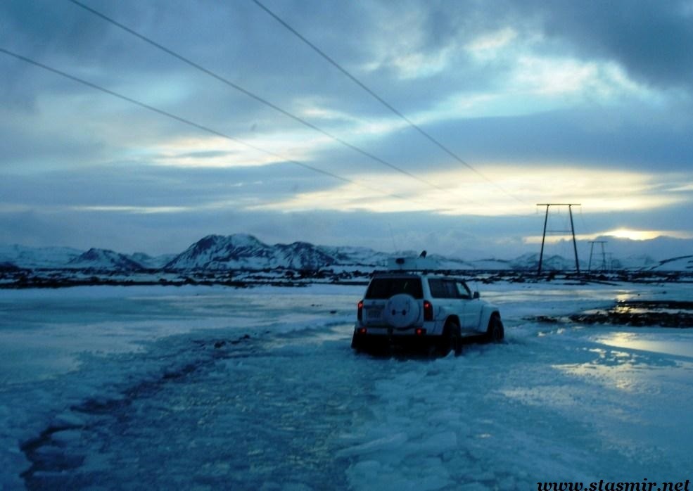 На дворе стояло 3 января, и я не был убежден, что Крису это удастся. В зимнее время дорога к востоку от самой длинной в Исландии реки – Тйоурсау (280 километров) – вообще непроходима, а проезд с запада от гидроэлектростанции Сультартанги так заносит снегом, что не проехать даже по откатанной траектории, до сантиметра вычерченной на профессиональном навигаторе.