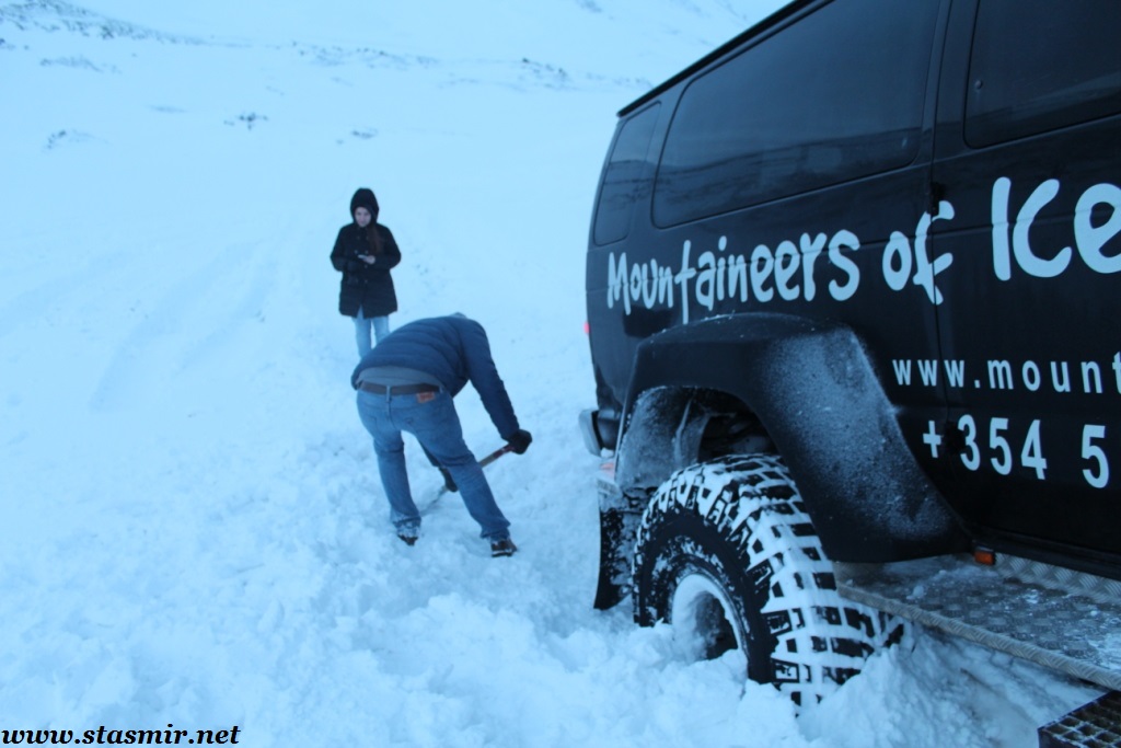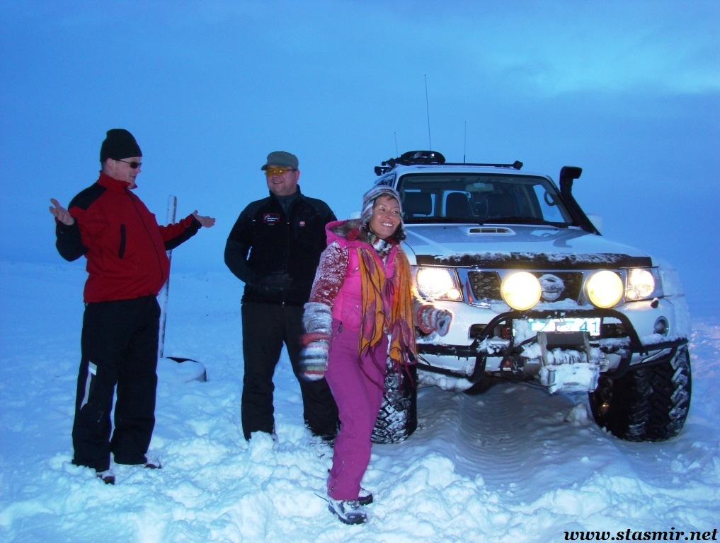 Потому что в Исландии джип-сафари – это не понарошку. Это всерьез и надолго. Здесь джип-сафари – это не охота с джипа, а охота на джип! Чья? Да бог его знает – богов, эльфов, троллей, русалок, кого только не встретишь на девственных просторах исландского высокогорья. В мире, стиснутом между ледниками, реками и лавовыми полями, мы ничтожны, как снежные воробушки. Нередко бессильна наша техника. Тут нет иллюзий: это не пляжный рай, в котором человек мыслит себя в центре вселенной, это место, где вы познаете собственную беззащитность. И то, как вместе люди могу противостоять стихии. Здесь нужно быть сильными – исландцам и тем, кто едет в Исландию. Спасибо терпеливым, мужественным и красивым туристам, которые ездили со мною на джип-сафари 3 января 2014 года! Приезжайте снова – весной, летом, осенью, зимой – и снова весной! Исландия неисчерпаема, как возможности «дифендера», который по слухам снимают в следующем году снимают с производства, как летние программы фирмы «Джаз» на острове. Похоже на подхалимский тост? Нет, я просто верю в то, что делаю. Приезжайте!
