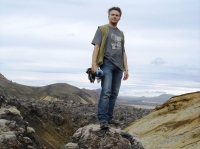 Отметив, что суперджип с все возрастающей натугой взбирается на снежные склоны, я осведомился у Криса, не пора ли разворачиваться домой, но тот хранил мужественное молчание и карабкался вверх как жук-навозник, снова и снова падая с одного и того же склона. Автоматическая трансмиссия начала перегреваться, и в машине становилось жарко и несвежó. Ботинки подсохли, и я сказал Крису, что мы покидаем джип. Чтобы облегчить ему весовую участь, а заодно расправить ноги и легкие. Мы взобрались на горку с похожим на каменный перст лавовым пупырышком. Я не раз фотографировал это образование раньше, но сейчас, отлучившись по малой нужде, едва не угодил в полость глубиной метра четыре у его вершины. Очевидно, проходившая здесь лава накрыла водное препятствие, вода перегрелась и прорвалась сквозь твердеющий лавовый щит газовым пузырьком, оставив на поверхности прыщеобразный полый пупырь. Интересно, как при ближайшем знакомстве оказывается, что знакомые черты исландского ландшафта хранят как приятные, так и неприятные тайны.