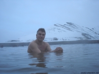 «Не волнуйтесь: мы уедем, потому что завтра утром самолет!» – успокоил ее я. Пока я метался в потемках с ведром и падал в реку, часть туристов самостоятельно добралась до «купальни» – деревянной платформы, на которой можно раздеться и спуститься в горячий ручей. Я помню свое первое посещение Ландманналёйгар осенью 1990 года – еще в студенчестве. Долина окружена со всех сторон острозубыми горами, ландшафт – из «Властелина колец», над головою пронзительно яркие звезды, иногда северное сияние или звездопад. В термальной речке – упоительная нега (для тех, кто набрался мужества раздеться под открытым небом без комфортной раздевалки). Зима, звезды, пар изо рта, камни на дне так нагрелись, что обжигают сидение и поясницу, в руках баночка пива, рядом – любимая и верные друзья. Безмятежный сон на общей многоярусной лавке в спальных мешках. Мне не известен лучший рецепт для счастья.