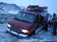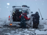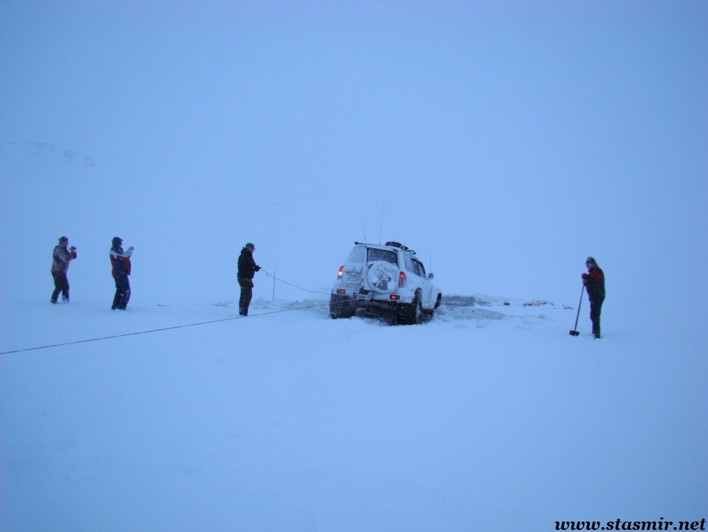 Когда мы достигли базы, стемнело. На встречу нам с базы выдвинулись два джипа «Патруля», но, как выяснилось, спасать они мчались не нас, а застрявший «Эконолайнер» с Крисом. На базе нас встретила суровая исландская женщина-рейнджер, всем своим видом выражавшая негостеприимство. «Шляются тут всякие, а мне потом домик убирать» – было написано на ее широком скуластом лице. Я попросил ее открыть туалет, занесенный снегом чуть ли не по самую крышу. Она стала упрямиться, утверждая, что туалет открыт. «Везет мне сегодня на упрямых людей, – удрученно размышлял я – от водителя, который во что бы то ни стало решил доехать до конечной точки на неисправном джипе, до женщины-трольчихи, убежденной, что мы прилетели из России и преодолели белое безмолвие только за тем, чтобы натоптать ей полы».