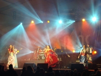 По части эффектных входов на сцену это выступление не знало равных. В сопровождении женского исландского хора из 24 голосов Бьорк предстала перед публикой в невероятного размера оранжевом парике, что делало ее похожей на мультяшного песика, и в основательно прогофрированном платье голубого цвета. С потолка спустилась клетка, внутри которой бесновалась катушка Теслы. Пурпурно-белые ветки молний шипели и трещали, пока Бьорк разрывала пространство своим голосищем. Такое не забывается!