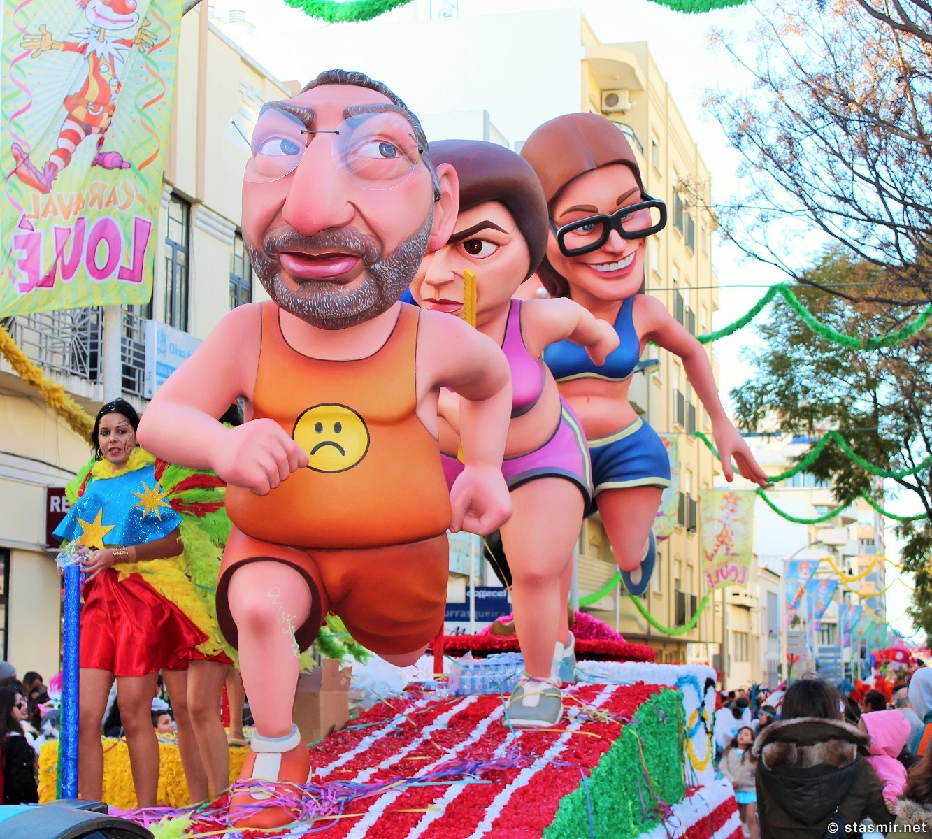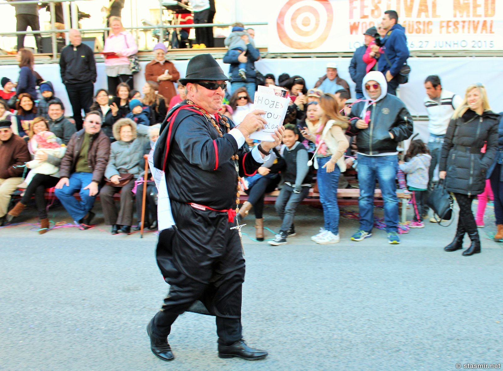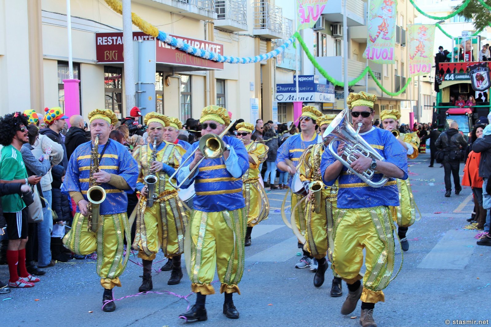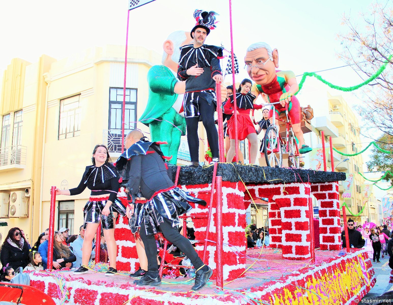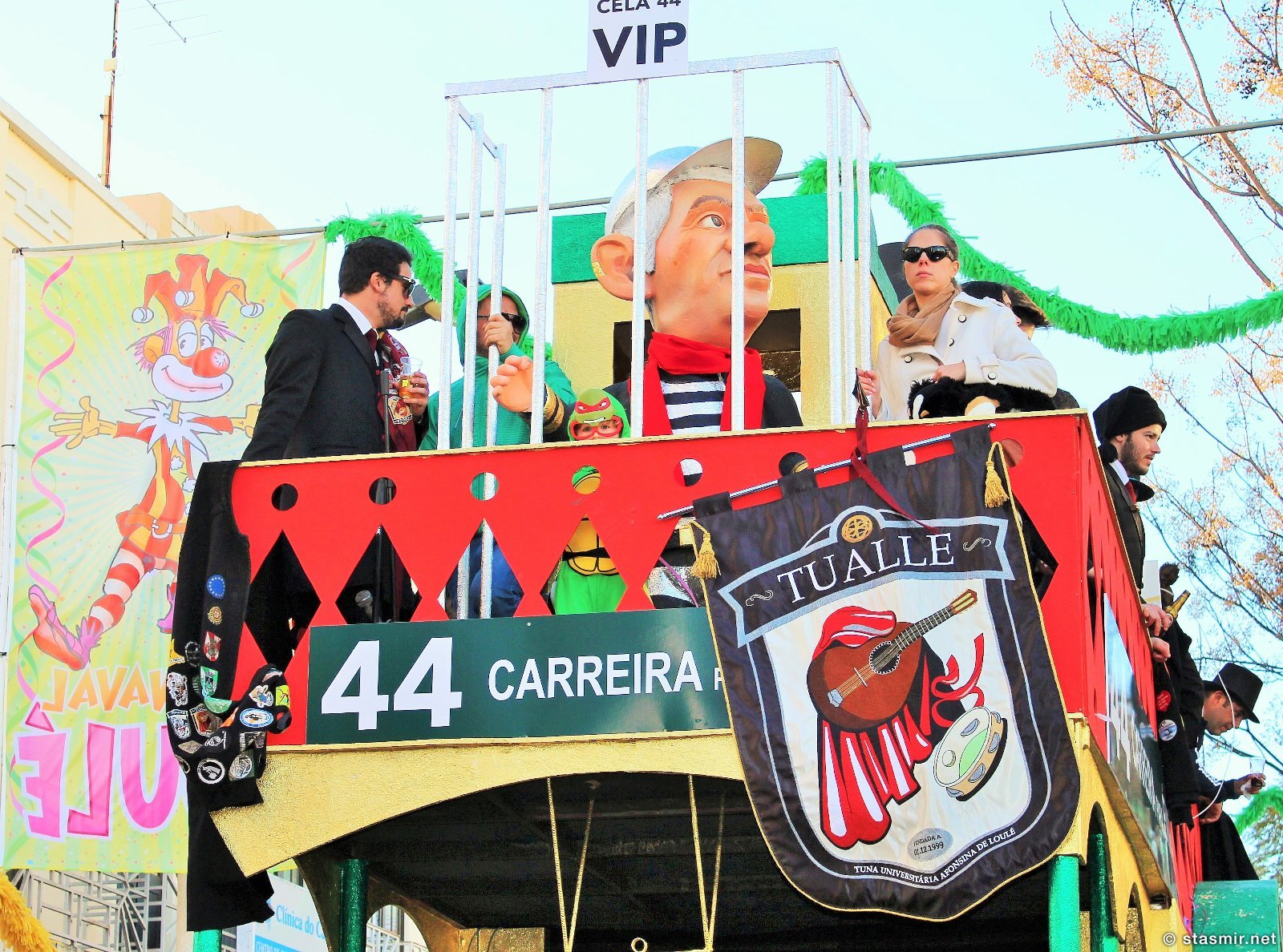 Наблюдал и самый большой карнавал в провинции Алгарве – в городе Луле. В этом шествии была представлена политическая сатира, хотя не в таком объеме, как во время студенческого праздника сжигания ленточек. Стандартные герои карнавала: бывший премьер Сократеш, в настоящее время проживающий в камере предварительного заключения, «Тройка» кредиторов (Еврокомиссия, Евро ЦБ и МВФ), которых португальские СМИ представляют чуть ли не мировым злом, другие популярные политики и футболисты. А также неминуемые в любой португальской процессии буржуи и ковбои: они сидели в кибитке, запряженной пони или осликом, и курили сигары.