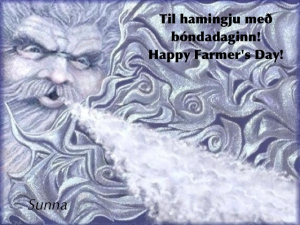 Как в Исландии. То, что я называю «странными праздниками», началось там еще в конце января. 23 января на острове отмечался «боундадагюр» – день фермера. Или мужа: как в английском слове «husband» (родственном исландскому «húsbondi»). Последнее предлагаю переводить как «одомашненный фермер». Утром этого дня такой «окольцованный мужик» должен встать раньше своих домочадцев, просунуть ногу в ОДНУ штанину и обскакать на ОДНОЙ босой ноге (на другой покоится брючина) в нательной рубахе свой дом.