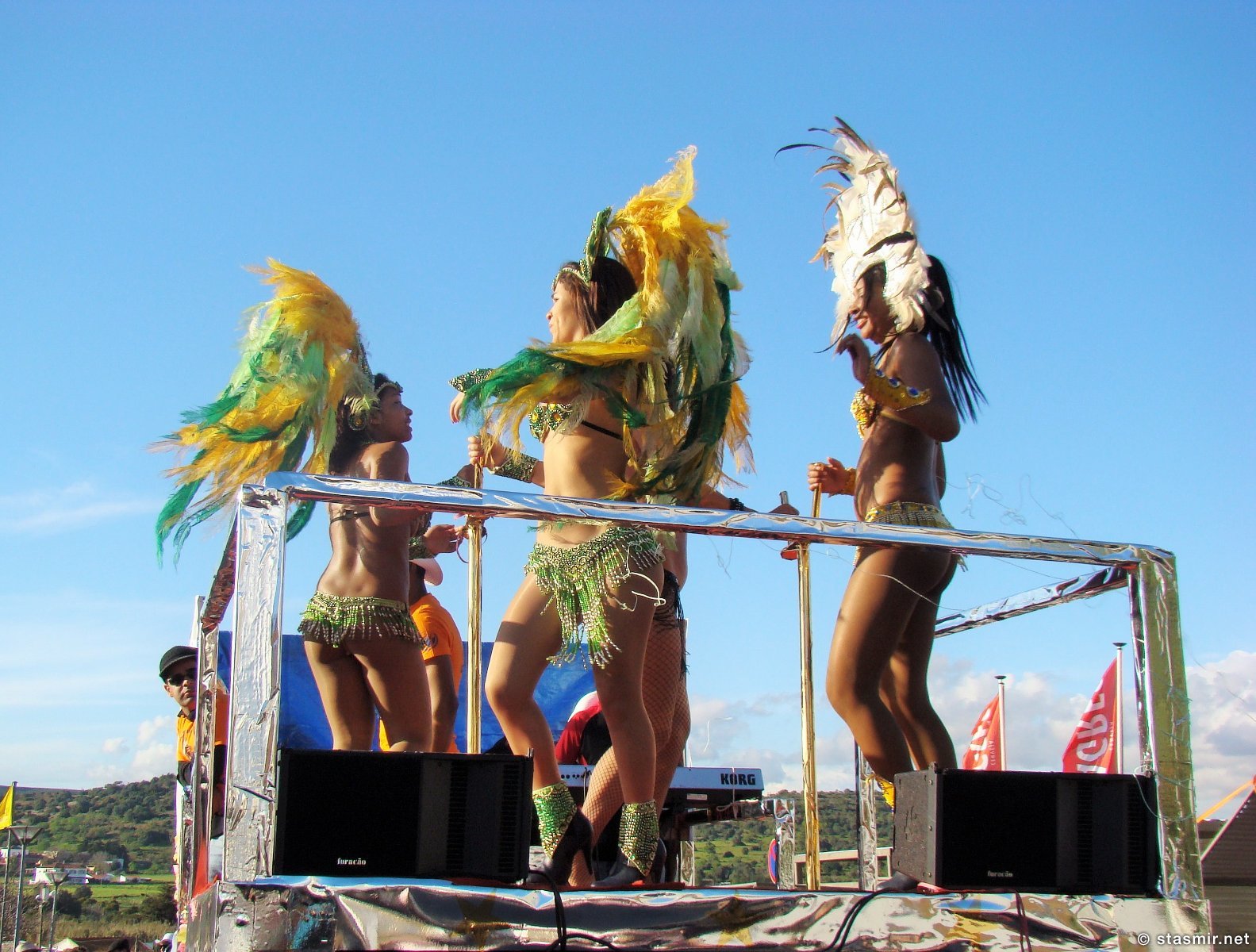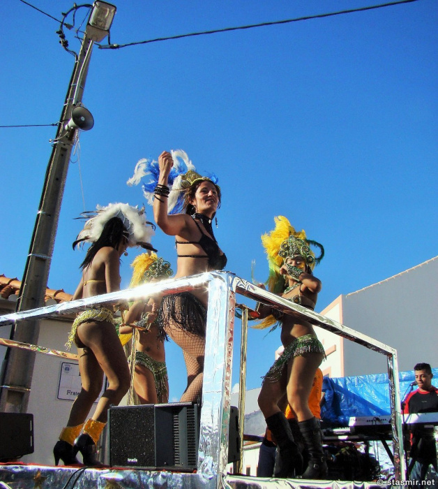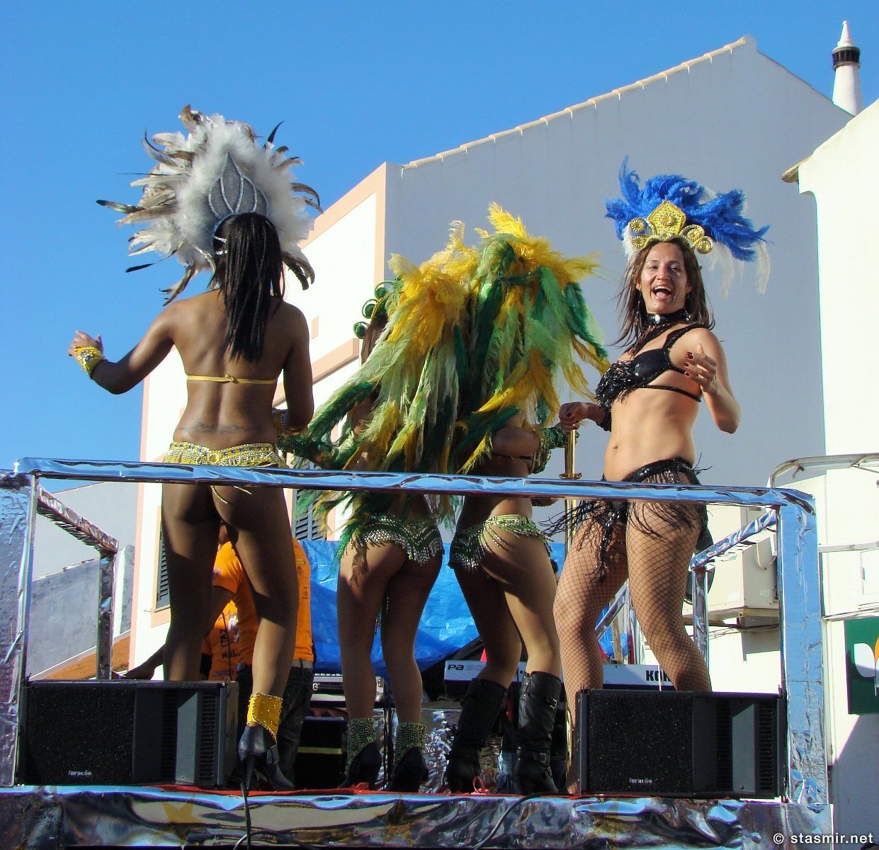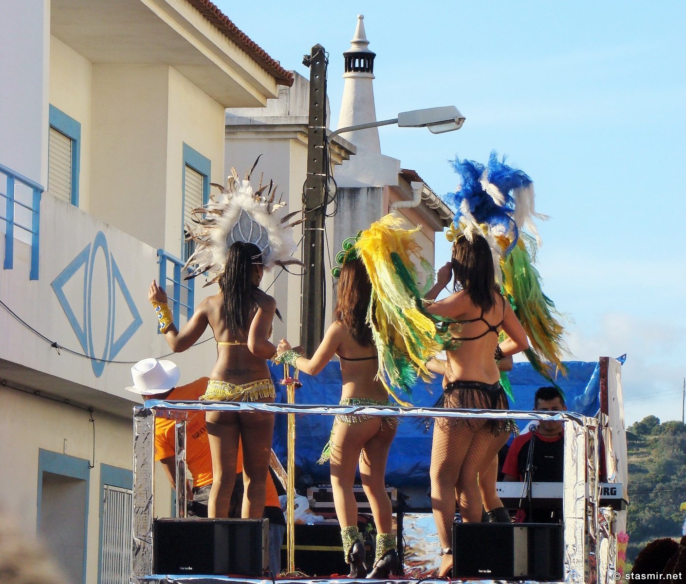 Один такой деревенский карнавал меня просто очаровал. Помимо алгарвийских долгожителей, в нем участвовал отдельный грузовик с танцующими бразильянками. Последние были прекрасны, но слишком профессиональны, так что даже захотелось чего-нибудь домашне-целлюлитного – в розовый горошек.