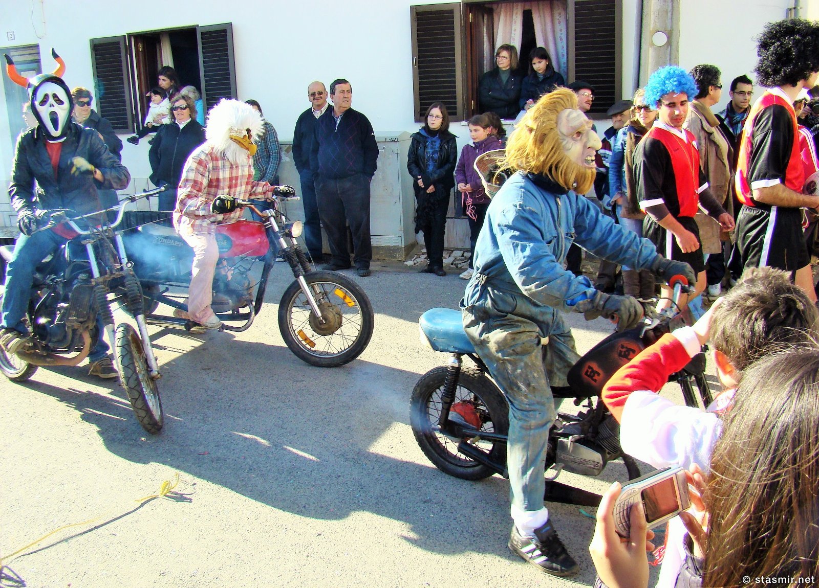 В Португалии все чинно и безопасно. В особенности в сонных алгарвийских деревеньках, где карнавал – всего лишь небольшая цепочка тракторов с прицепами. В них восседают столетние бабули и дедули. Трактора нарезают круги по компактному райцентру, а карнавальщики, не прерываюсь ни на секунду, поедают булочки с «шурису» – местной колбасой. Возможно, они готовятся к Великому Посту, который явно соблюдают.