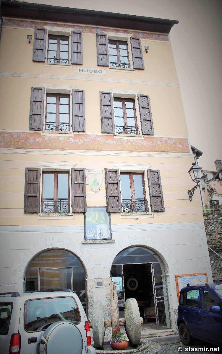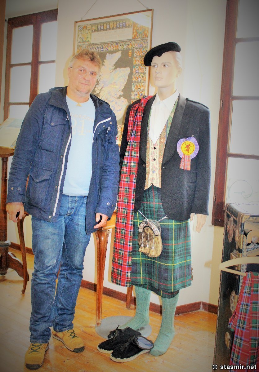 С этнографическим музеем. Чтобы его открыли, потребовалось выпить винца в баре напротив музея. Когда хозяева решили, что выпито достаточно, нам открыли сокровищницу гуррской культуры по три евро на человека. Помимо прочего, музей повествует о том, как шотландские наемники на службе у французского короля Франциска бежали после Битвы при Павии через Альпы в направлении «бони-бони бэнкс оф Локломан». Им не хватило суворовской «скрепы», чтоб добраться до самой туманной части Альбиона, и они остались зимовать в миловидной деревушке с понятным кельтским названием «Гурро». Считается, что это значить «крепость», хотя – если спросите меня – это может означать что угодно: хоть сорт огурцов! И затерялись в эпохах, так что сегодня их шотландские корни выдает лишь фамилия «Дональди» (от МакДональдза), да Андреевские кресты, развешенные по гранитным стенкам кельтской кладки. Хотели Шотландию – получите: вот она, маленькая Шотландия, среди итальянских Альп!