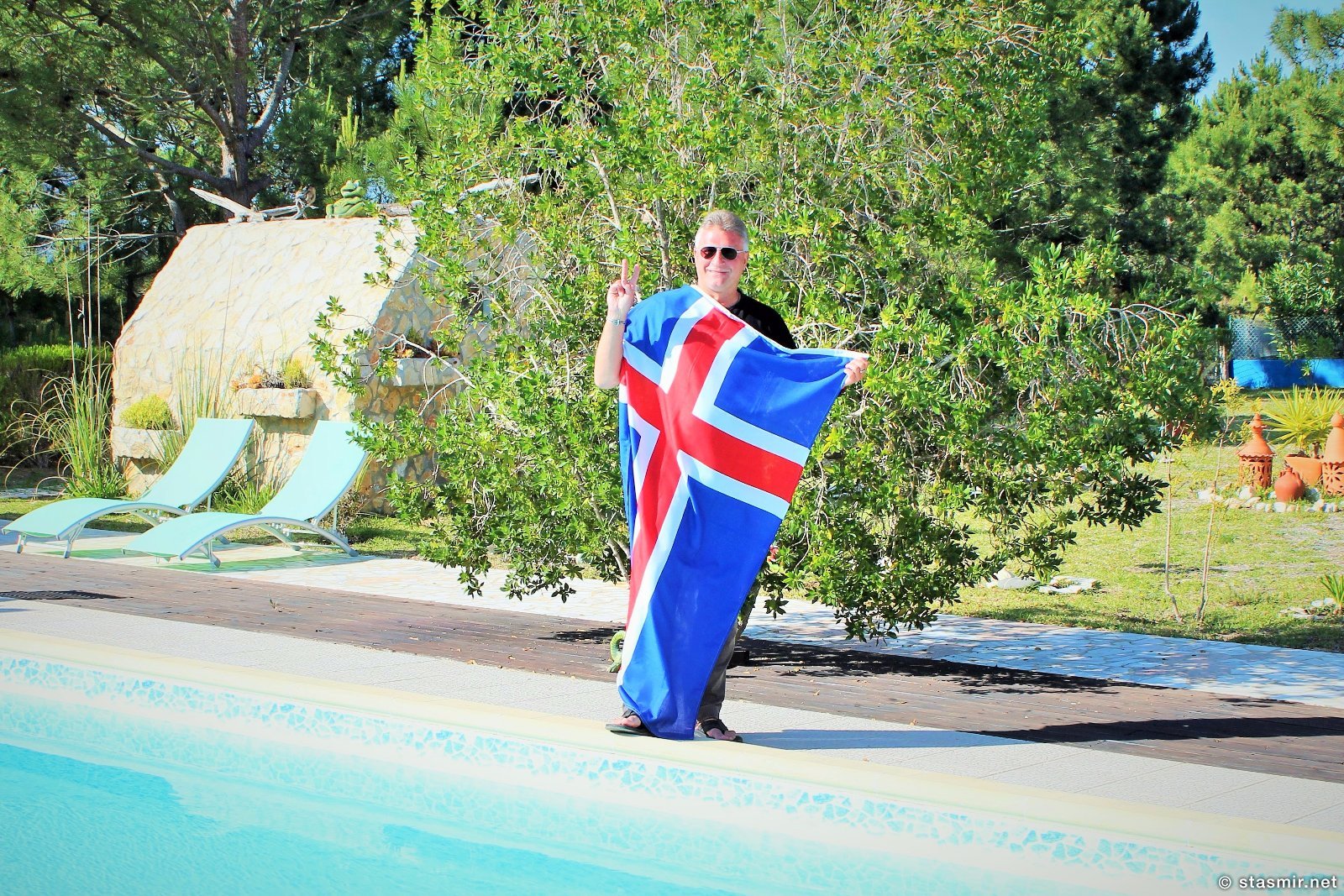 Захотел послать привет исландцам, которые по необъяснимым причинам любят Евровидение. Сфотографировался с исландским флагом. Выложил для «мордокнижников». Почитал интернет: Евровидение, оказывается, не вчера, а сегодня, при этом шансы острова на победу близятся к нулю.
