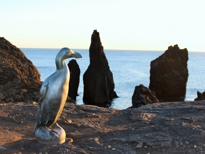 Вначале были птицы. Потом чучела. Сегодня в мире имеется 78 чучел бескрылой гагарки, но ни единой живой птицы. Потом истребленные птицы начали напоминать нам о себе памятниками. В 2010 году на полуострове Рейкьянес «забронзовел» гигантский памятник бескрылой гагарке работы скульптора Тодда МакГрэйна. В Рейкьявике имеется другая мемориальная гагарка работы Олёф Нордал. Она реалистично манит из морских далей вдоль пешеходно-велосипедной дорожки, огибающей южное побережье исландской столицы.