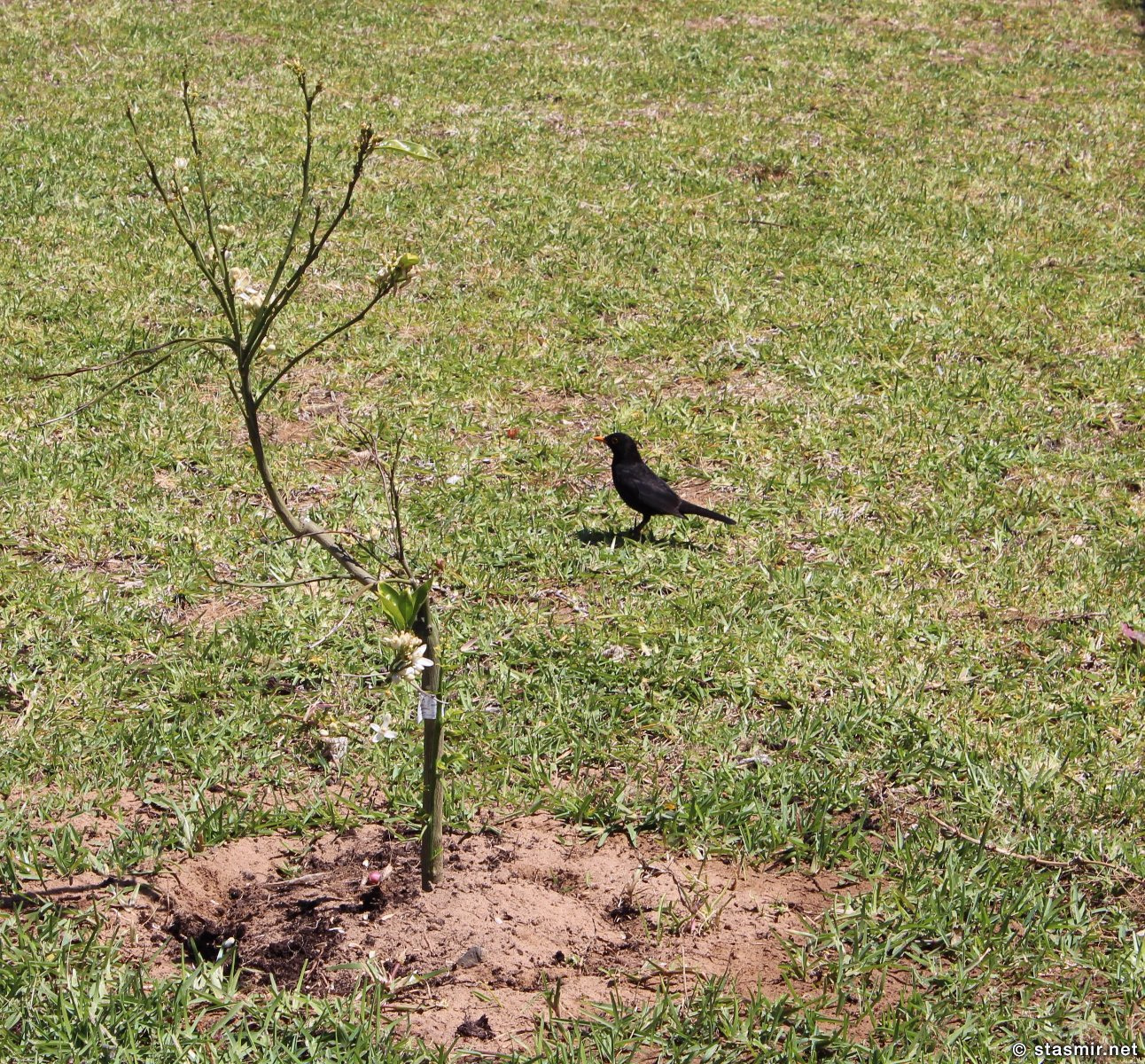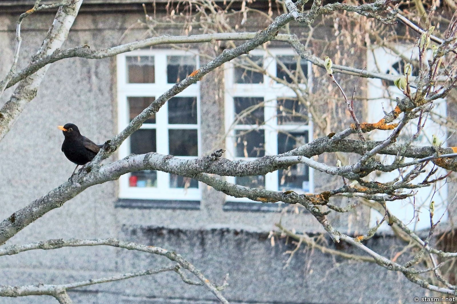 «Blackbird singing in the dead of night». Не скажу, что прямо так нарезают в ночной тиши, но и впрямь просыпаются первыми. Последними сажают солнце: галдят пронзительно, будто каждый закат финальный. Остальное время дня набивают чрево червячками и насекомыми. Черные птицы: дрозды.
