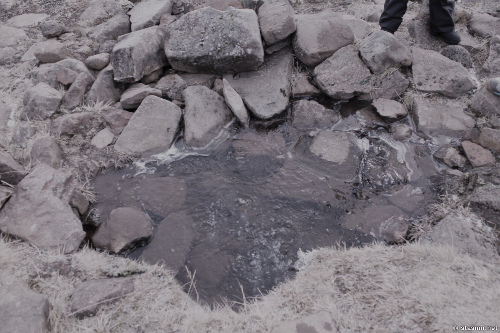 А если серьезнее, то «ölkelda» еще и просто минеральный источник, без пивных коннотаций. Как Минеральный Секретарь из моей юности. Летом вода в источнике бывает немного илистой, а зимой она бескомпромиссно прозрачная с бульками, упорно прущими со дна небольшого выложенного камнями водоема.