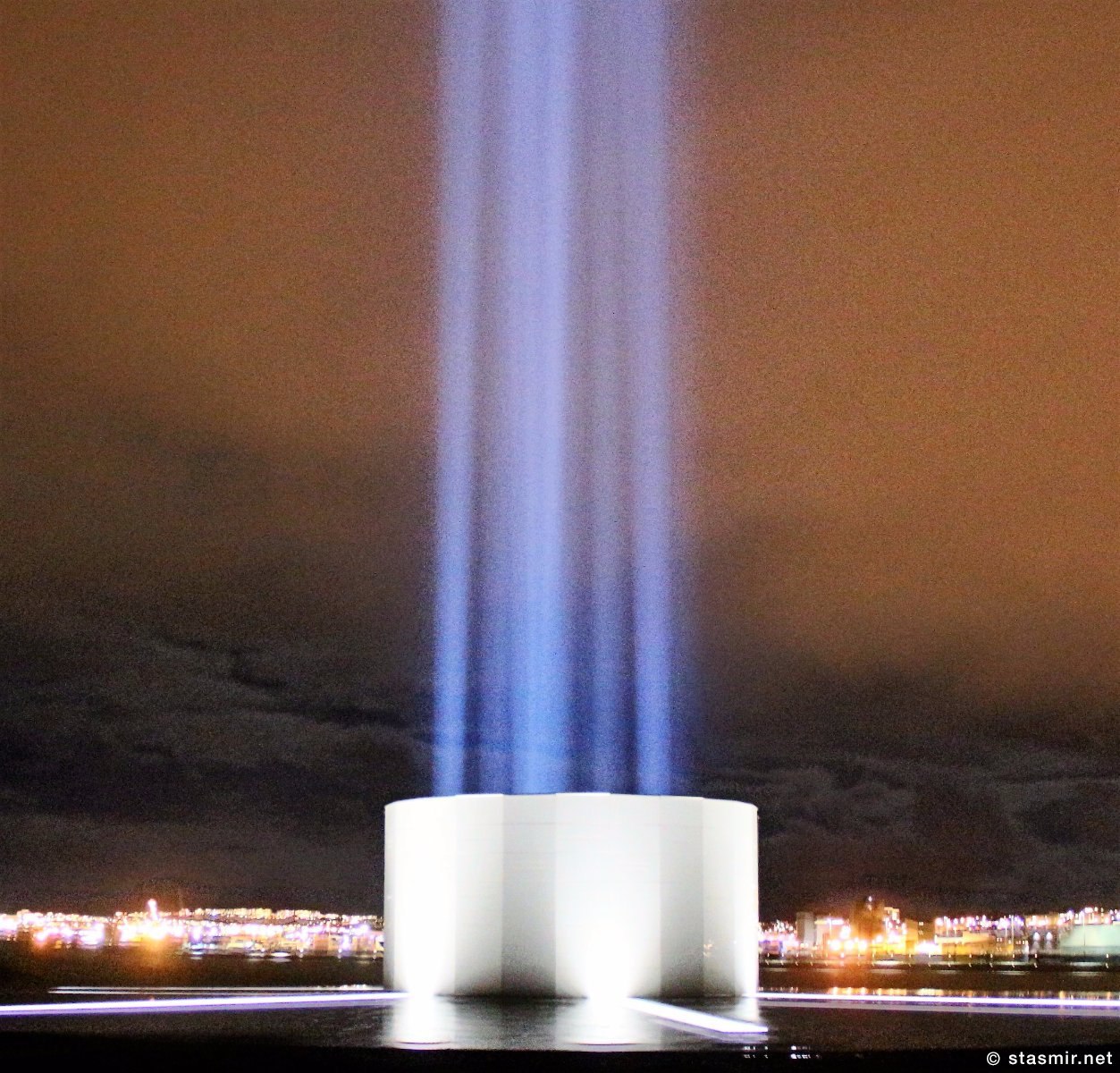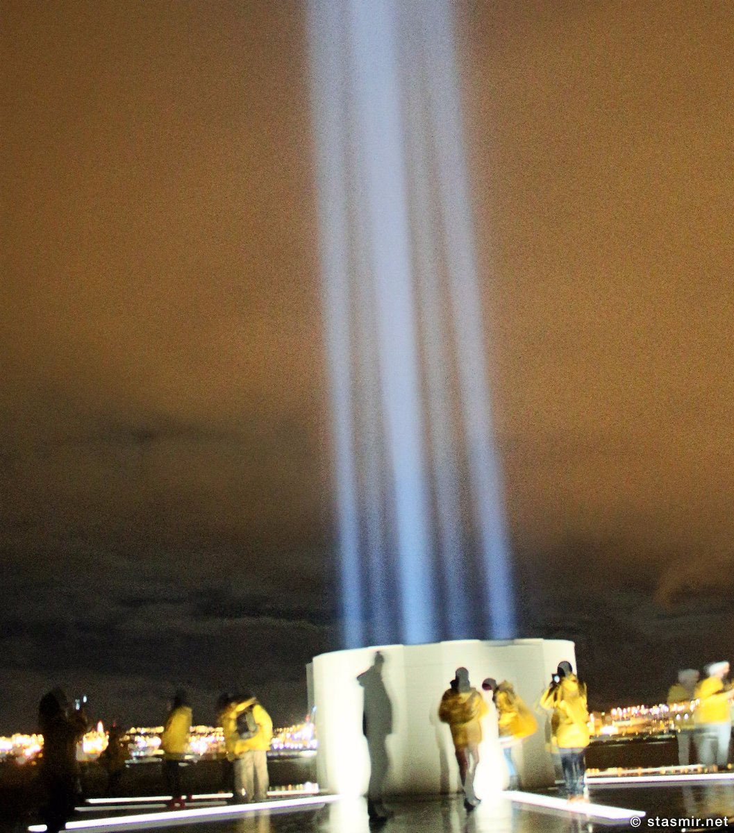 Вот другой день: 8 декабря 2016 года. Я работаю в Исландии. Спешу в Рейкьявик из Ледниковой Лагуны, чтобы успеть на последний пароход на остров Видей. На острове сияет Башня «Imagine Peace» («Представьте себе мир»).