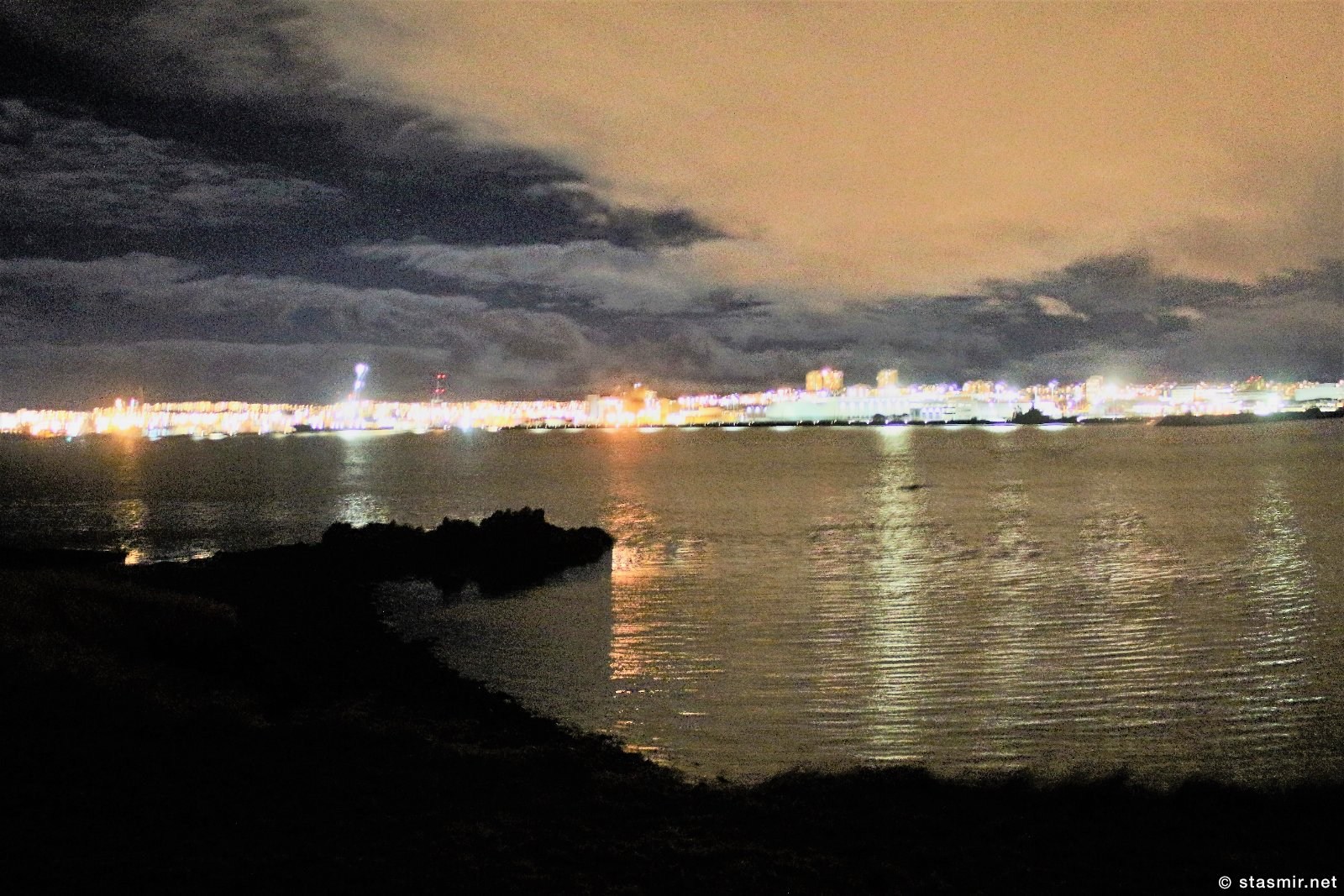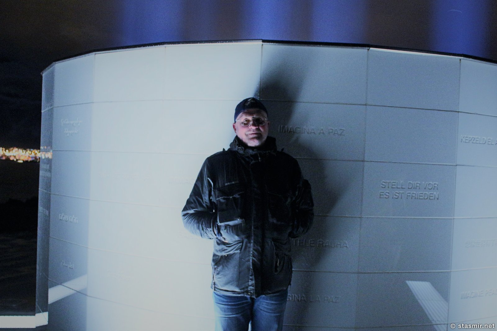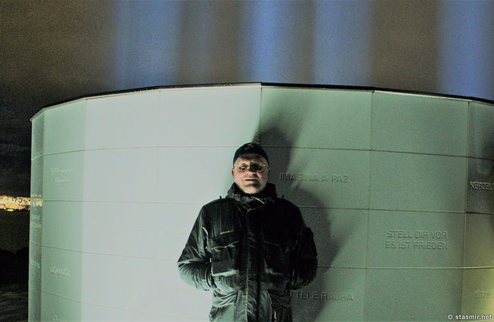 Гуиллом провел нас к Башне Света, под которой мы долго фоткались. Он указал на мутное зарево за облаками, которое могло быть (а могло и не быть) северным сиянием. Русскоговорящая дама из Лондона припала к Башне Мира, как к Стене Плача. Я тоже приложился к ней (Башне, а не к даме), но ни та, ни другая не резонировали в такт моим миролюбивым чаяниям. То ли энергетик я хреновый, то ли стенка слишком белая и кафельная: как в музее панк-рока внутри общественного туалета в сердце Рейкьявика.