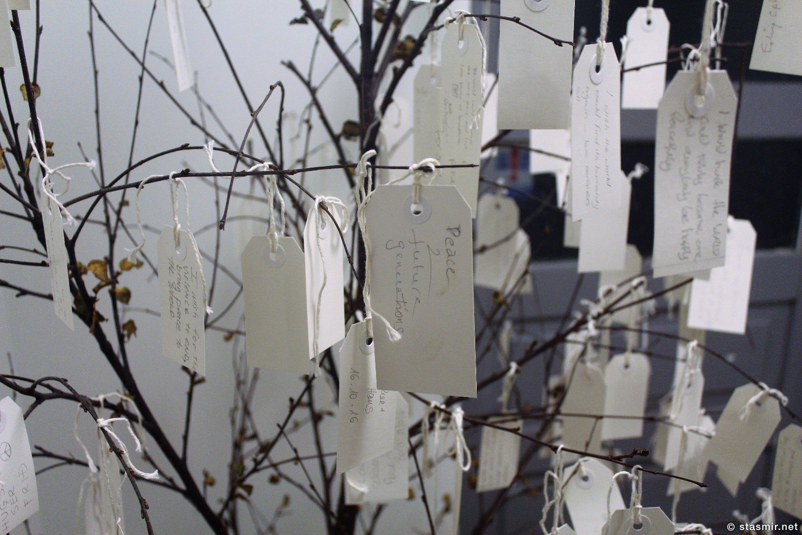 После слияния с высокотехнологичной Башней, питаемой геотермальным электричеством из пыхающего жаром чрева Исландии, Гуиллом повел нас в домик. Там он и его американский друг напоили нас какао. Мы зафиксировали послания мира на бирках и прикрепили их к дереву мира.