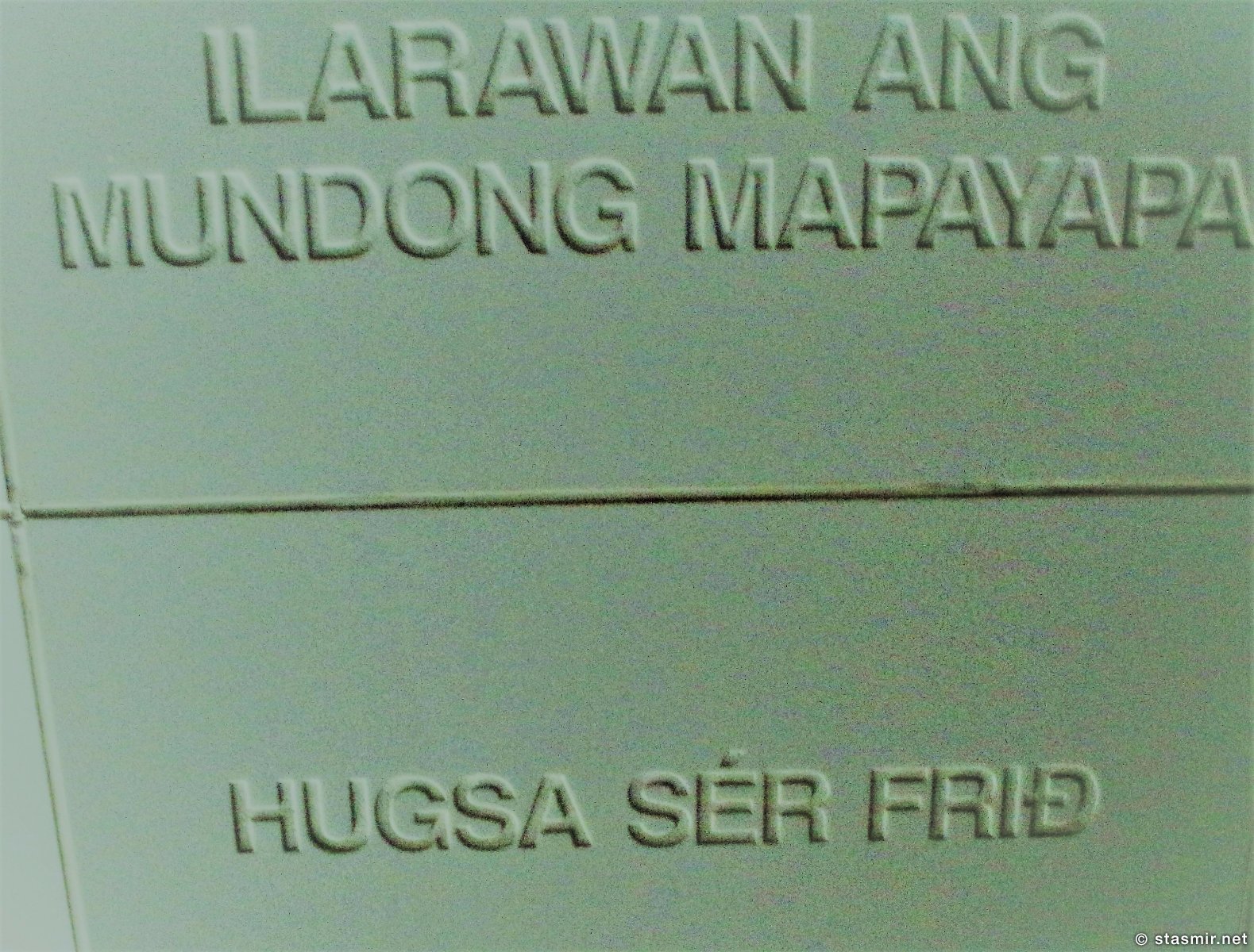 Линия бесконечно вьется вокруг себя, образуя три рыбообразных загогулины: прошлое, настоящее, будущее. Землю, океан, небо. Вечность. «Words are flowing out like endless rain into a paper cup. They slither while they pass, they slip away across the universe» – замурлыкало в голове. Потому что все битлы имеют ирландские корни. Или потому что Песня Мира крепче Башни Мира. Джон в Исландии никогда не был. Разве что трасцендентно, безбашенно – через Вселенную.