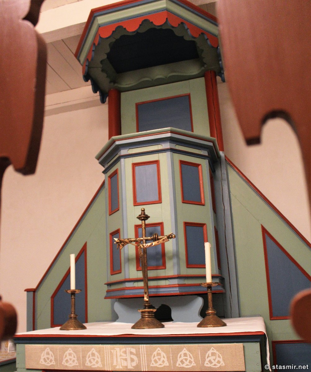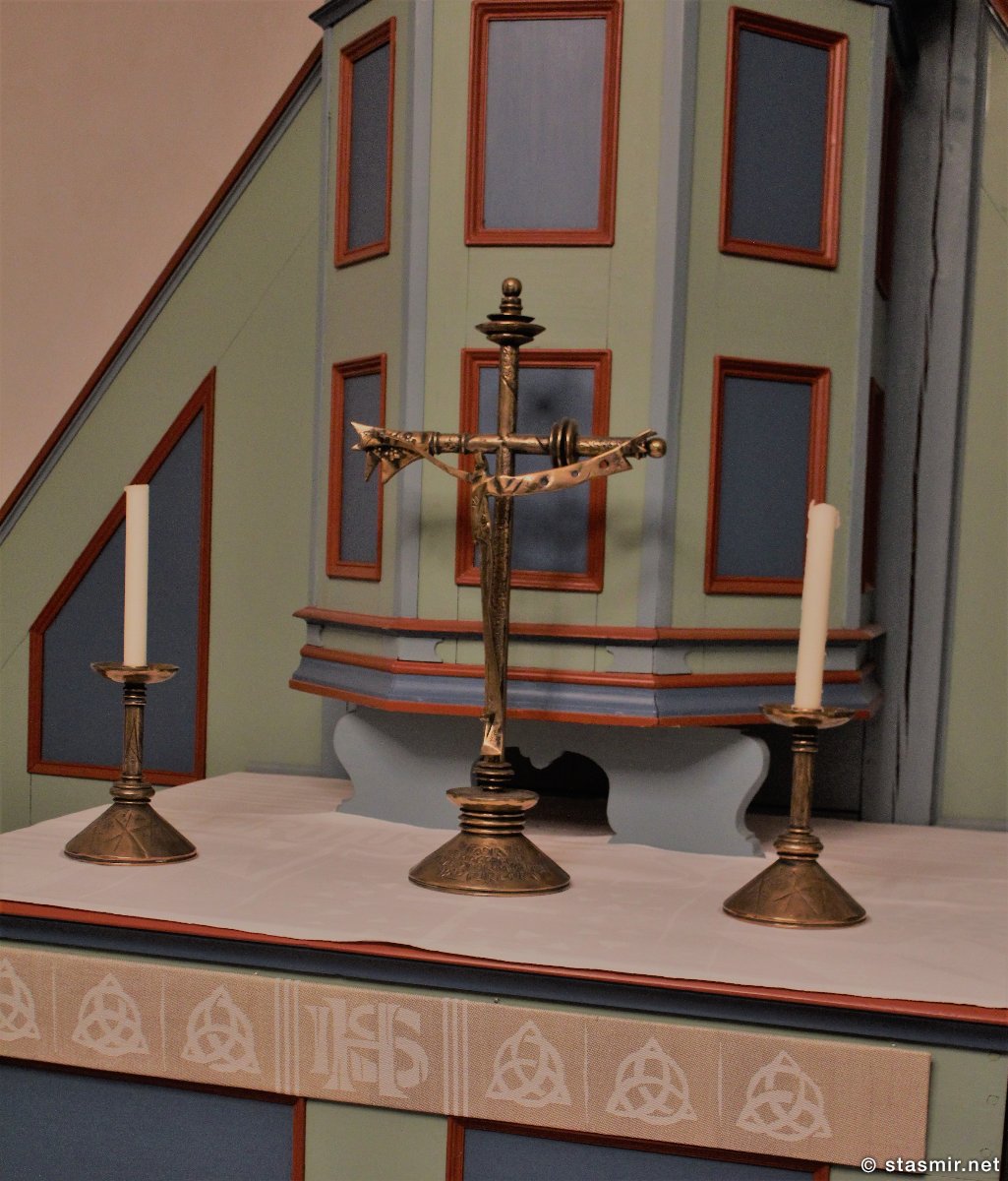 БашМира показалась мне слишком виртуальной: больше для селфи, чем для сердца. На обратном пути Гуиллом завел нас в церковь Viðeyjarkirkja, сооруженную в 1774 году. Для Исландии это седая старина. В алтарной части красуется знак «triquetra» – кельтский символ бесконечности, растиражированный в Галисии. Кажется, исландцы хотели подчеркнуть общность скандинавских и кельтских корней.