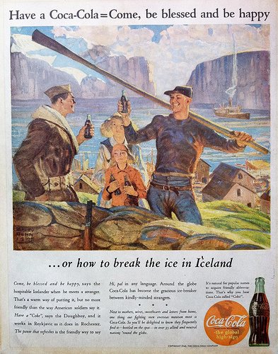 Я, признаюсь, сам неравнодушен к шипучим прелестям этого напитка – во всяком разе, когда подолгу сижу за рулем в Исландии. Первая фабрика кока-колы была открыта в Западном Рейкьявике на улице Хофсватлагата (Hofsvallagata) 1 июня 1942 года. Отец исландской кока-колы, предприниматель Бьёрн Оулафссон (Björn Ólafsson), в 1941 году отправился в США с целью заключения торгового соглашения для Исландии. Попутно он выхлопотал себе лицензию на производство колы. Первые 8 лет своего существования фабрика производила по 12000 бутылок в день, которые уходили просто влет: не в последнюю очередь потому, что фабрика находилась неподалеку от американской военной базы «Camp Knox». Сегодня на месте базы находится бассейн Вестюрбайарлёйг (Vesturbæjarlaug)