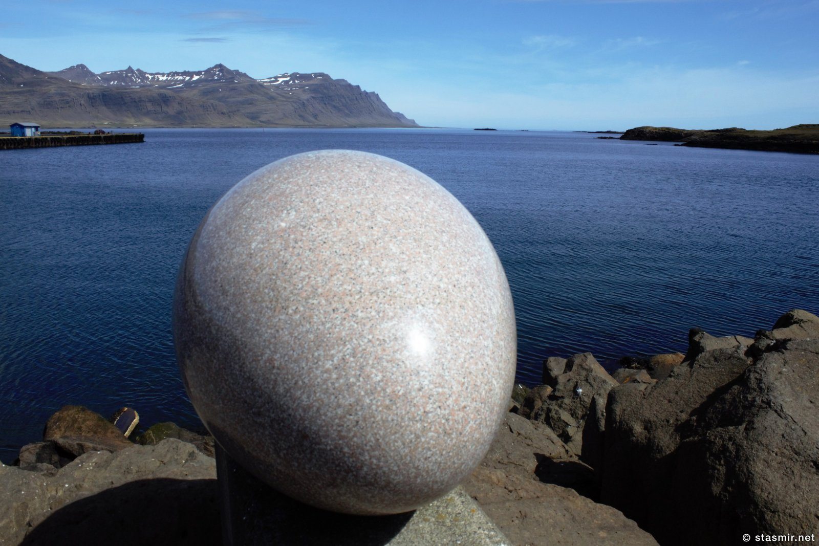 Памятный знак в честь Ханса Йоунатана, первого темнокожего исландца, собирались открыть перед Лангабуд (Langabúð) – датской торговой станцией, которую он в конечном итоге возглавил. Но в итоге стрела с разорванными цепями, названная «Frelsi» (Cвобода), появилась 10 июня уходящего 2021 года у главной достопримечательности Дьюпивогюра – 34 каменных яйиц, о которых писал здесь.