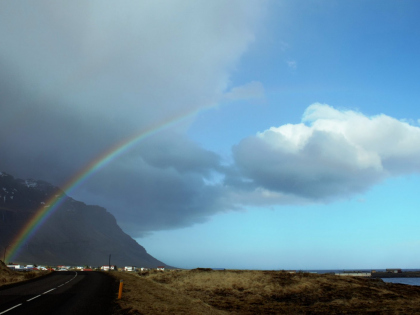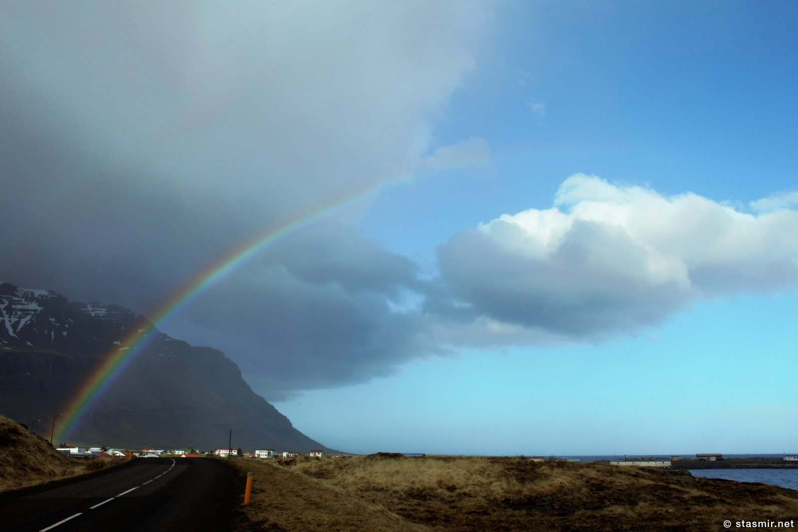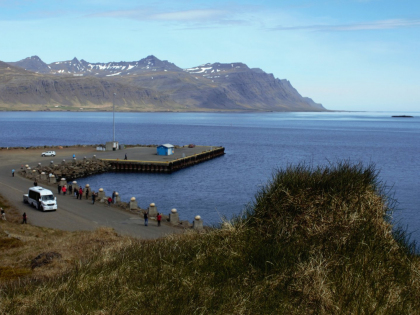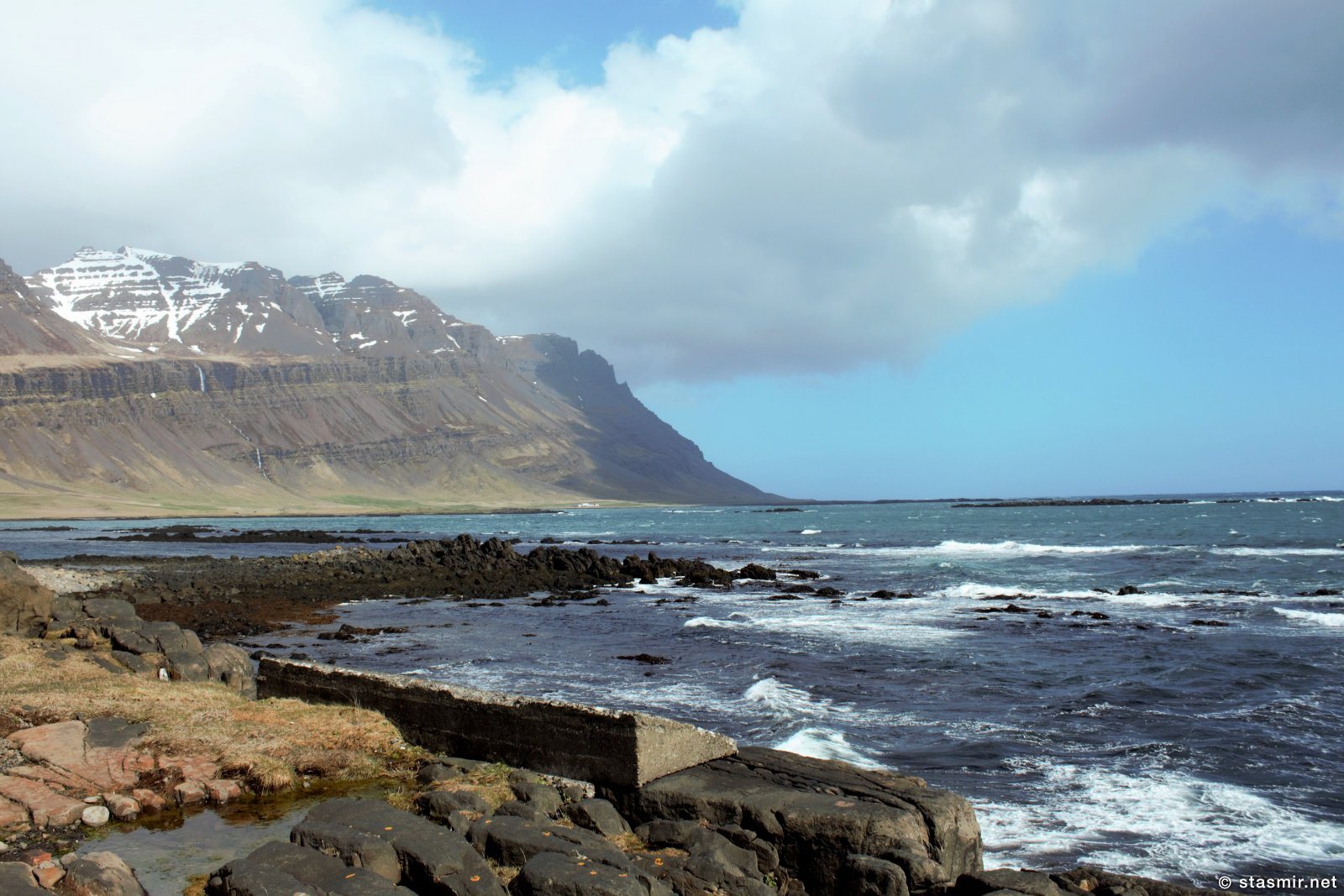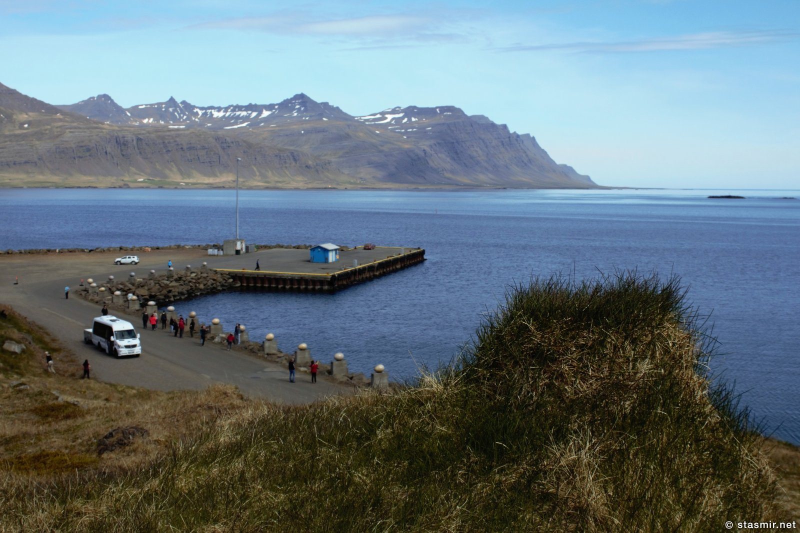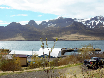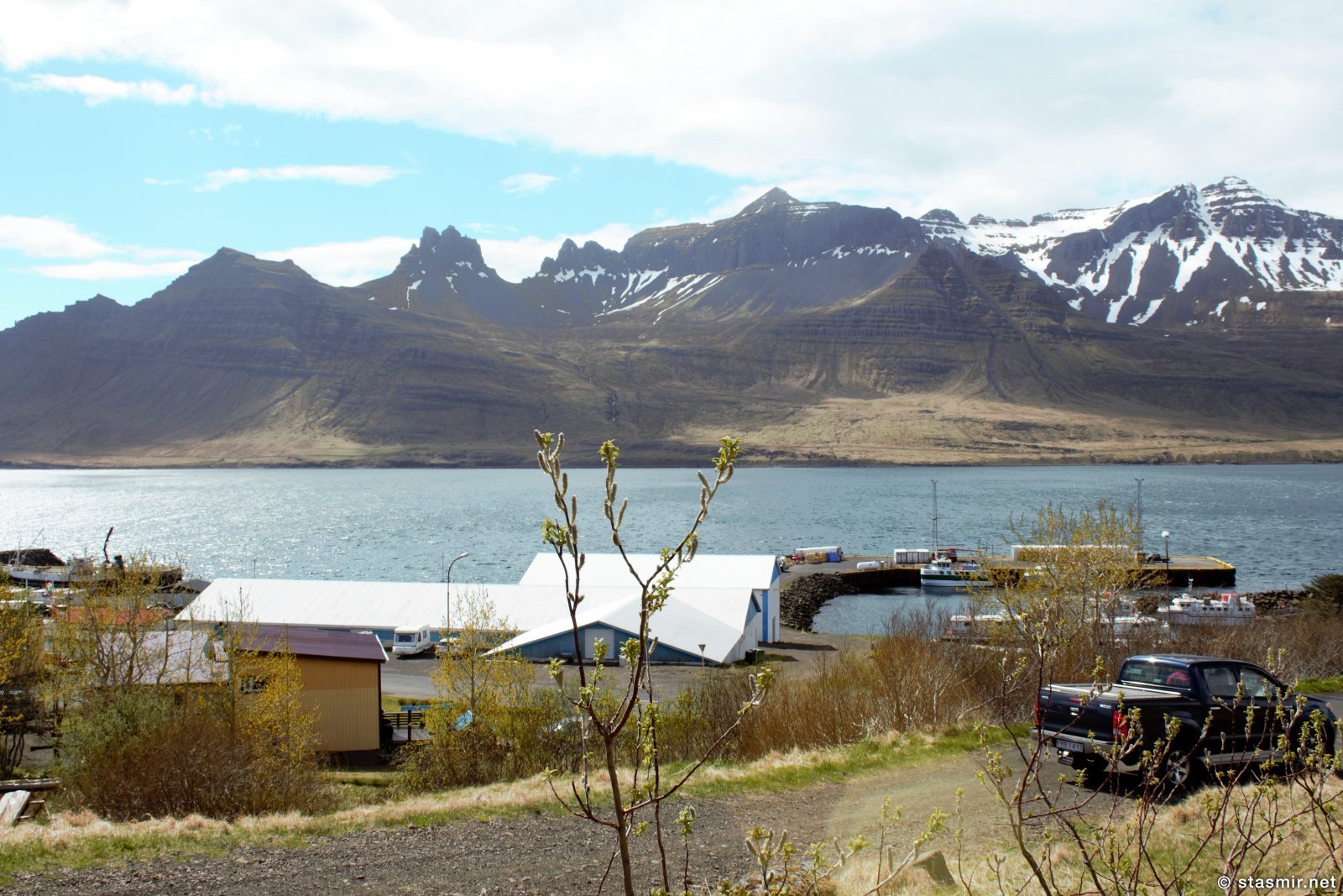 За Дьюпивогюром справа от дороги расположена информационная доска с видом на фьорд и россыпь характерных деревяных построек, покрытых смолой для долговечности. Табличка повествует о том, что здесь проживала первая в истории Исландии женщина-фотограф Хансина Регина Бьёрнсдоуттир (Hansína Regína Björnsdóttir). Годы жизни: 1884-1973.
