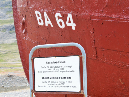«Garðar BA 64» (Гардар) – это старейший в Исландии пароход, построенный из стали. Он сошел с верфи «Akers mekaniske Verksted» в Новрегии в 1912 году. «Гардар» – ровесник «Титаника». Судно проектировалось как китобойное для работы в Южном ледовитом океане у берегов Антарктиды. Корпус усилен для ледового плавания: нос обшит 9-милимитровым стальным листом. Исландцы купили в январе 1945 года и переоборудовали для добычи рыбы.