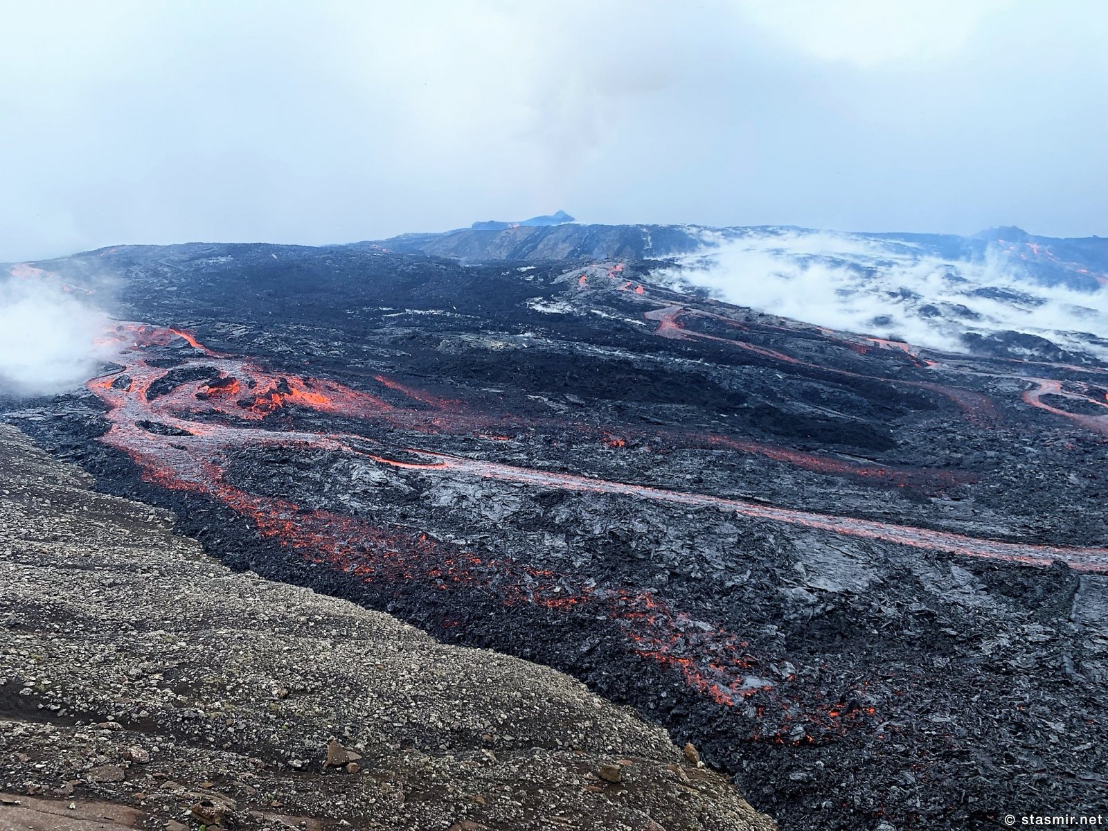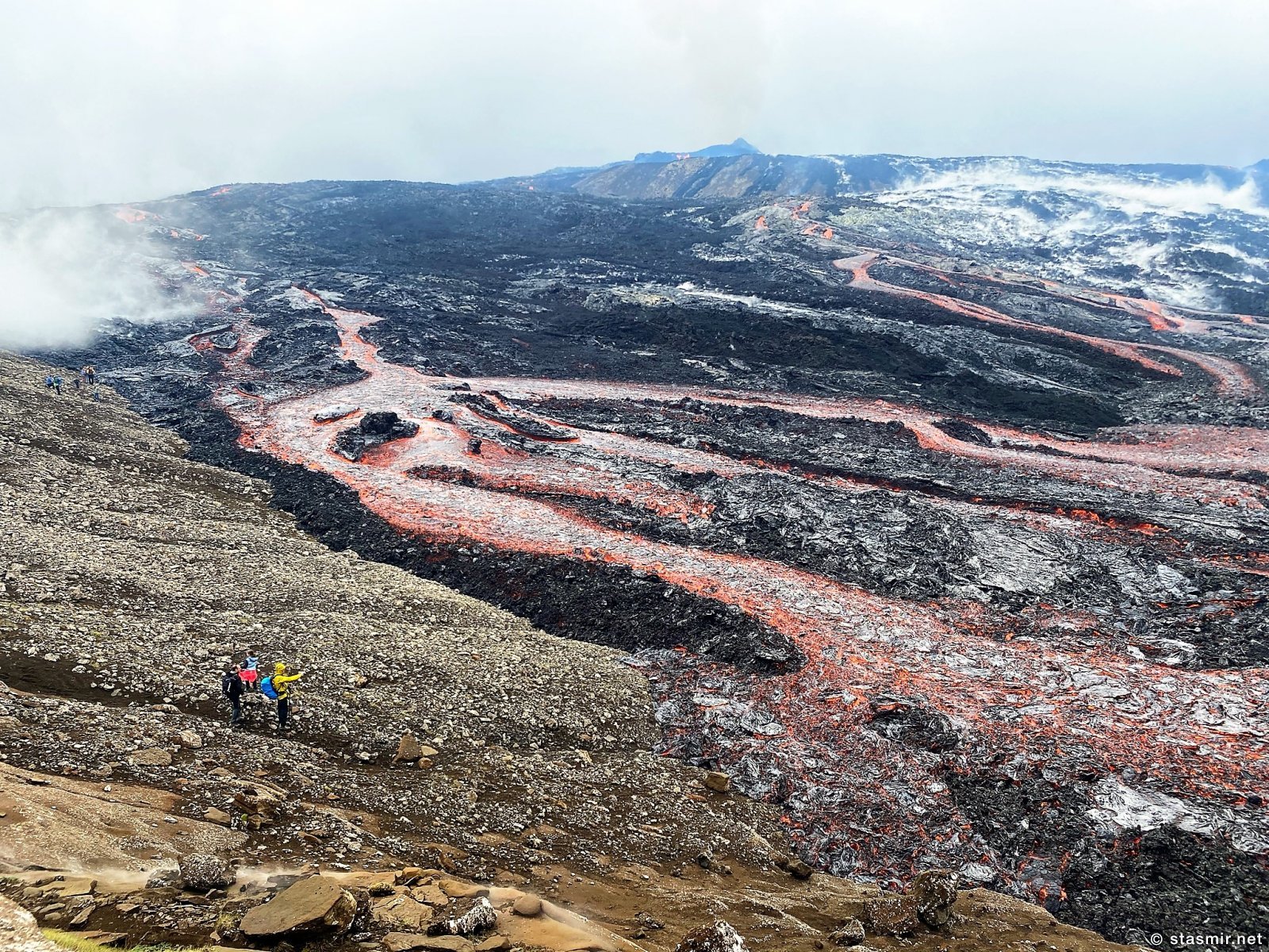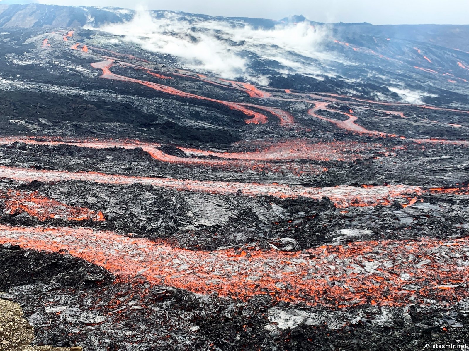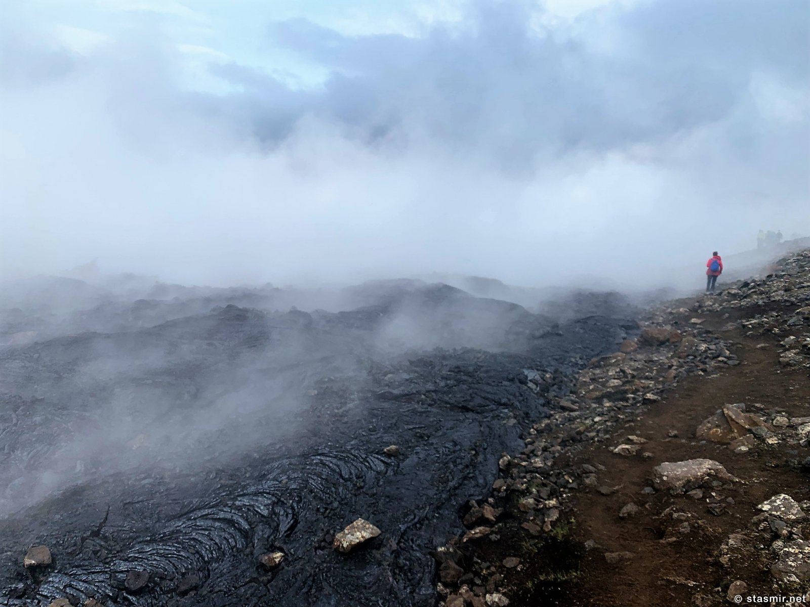 — Высокие температуры наблюдаются и на самой поверхности застывшей лавы. Кое-где мы видели с помощью тепловизора, что температура на поверхности превышает 200 градусов. Достаточно одного неверного шага, чтобы получить серьезные ожоги.