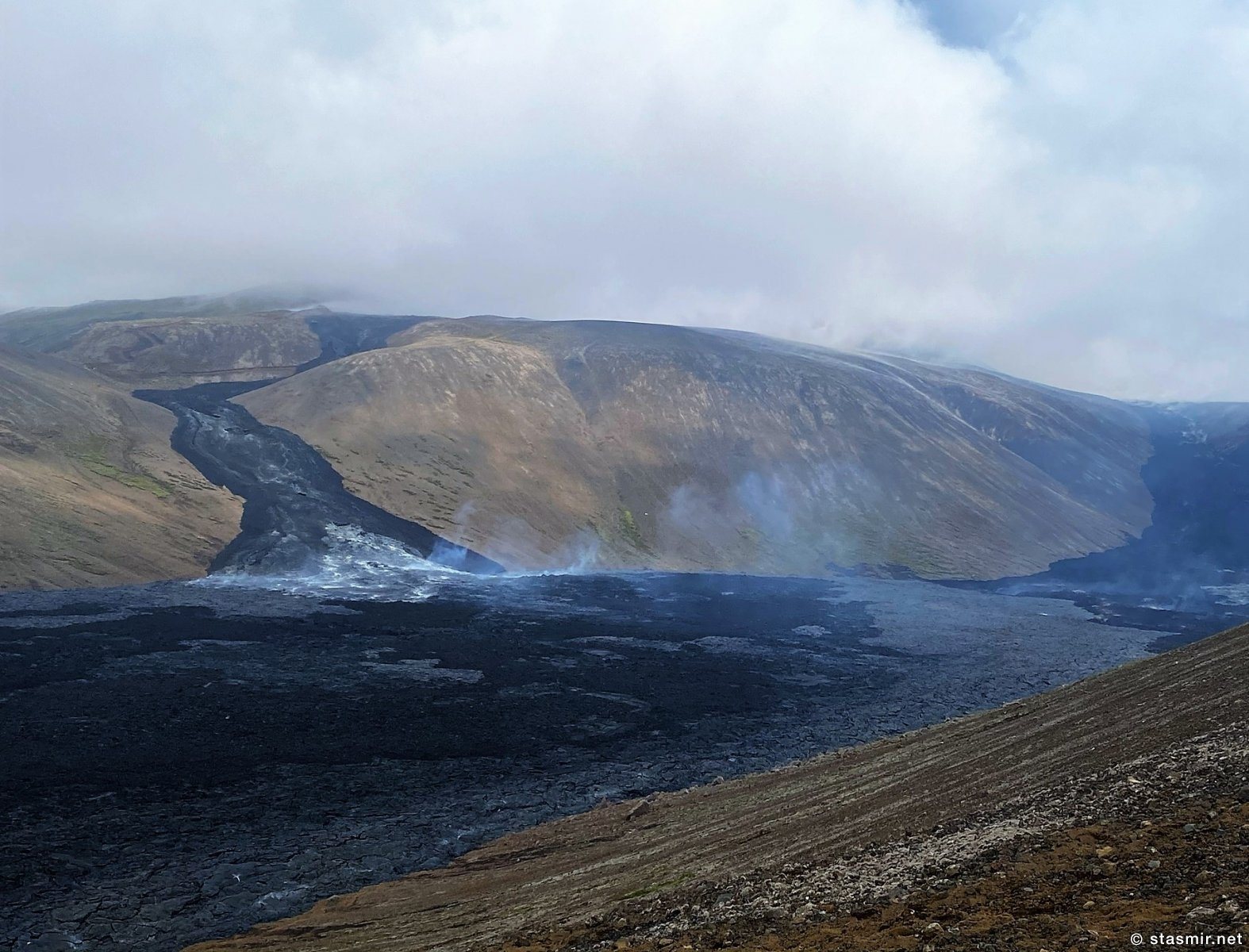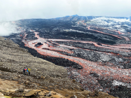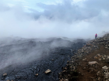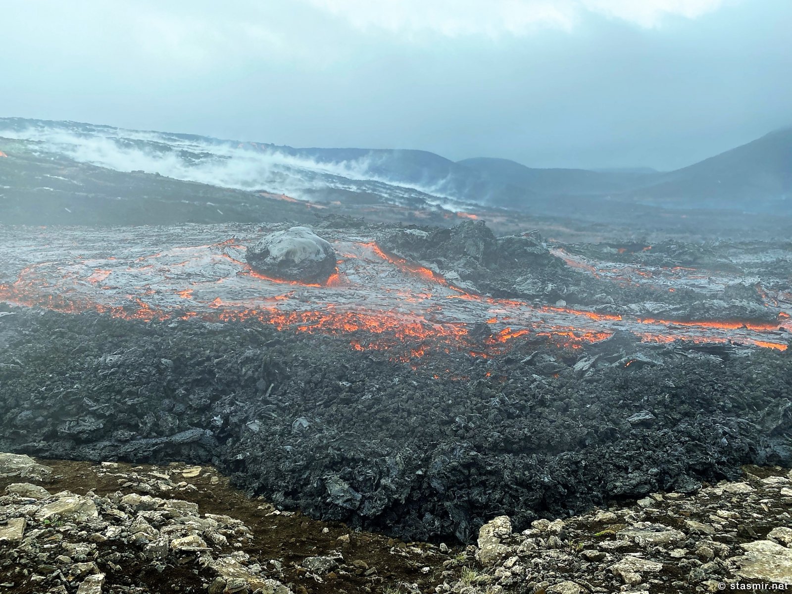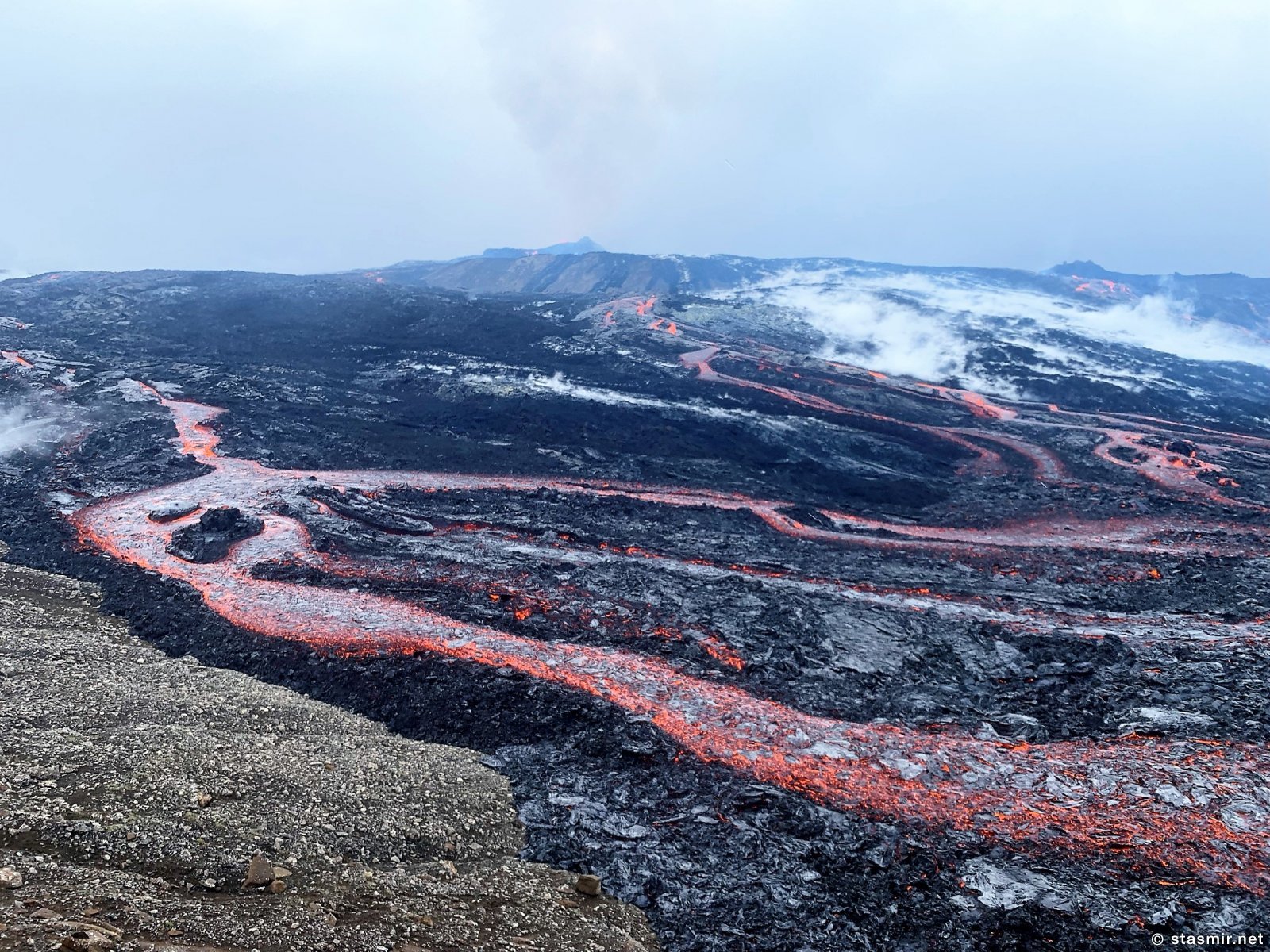 — Высокие температуры наблюдаются и на самой поверхности застывшей лавы. Кое-где мы видели с помощью тепловизора, что температура на поверхности превышает 200 градусов. Достаточно одного неверного шага, чтобы получить серьезные ожоги.