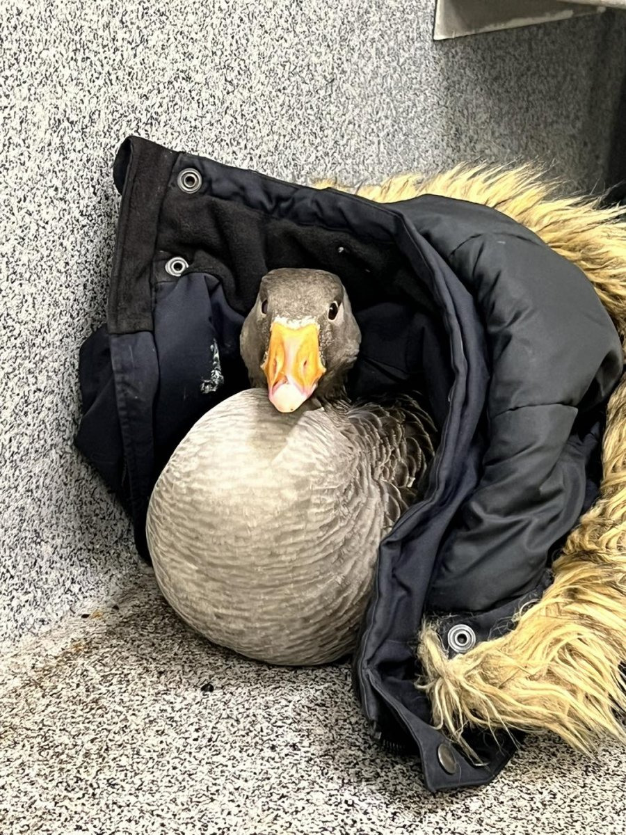 От беспрецедентных холодов страдают люди, а еще птицы. Полиция региона Судурнес (это полуостров Рейкьянес, аэропорт, Кефлавик и Гриндавик) на своей страничке в Фейсбуке поведала о том, что в участок им заглянул добрый самаритяин по делам меньших наших братьев. Неизвестный друг животных поведал полицейским, что ему попалась гусыня со смерзшимся клювом, которую срочно надо было спасать! Для спасения птицы незнакомец пожертвовал своей пуховой курткой с капюшоном (типа «аляска»), в которую укутал птицу. Гусыня была спасена полицией и отогрела клюв у батареи в полицейском участке. Она передает привет неизвестному спасителю и желает всем тепло одеваться.
