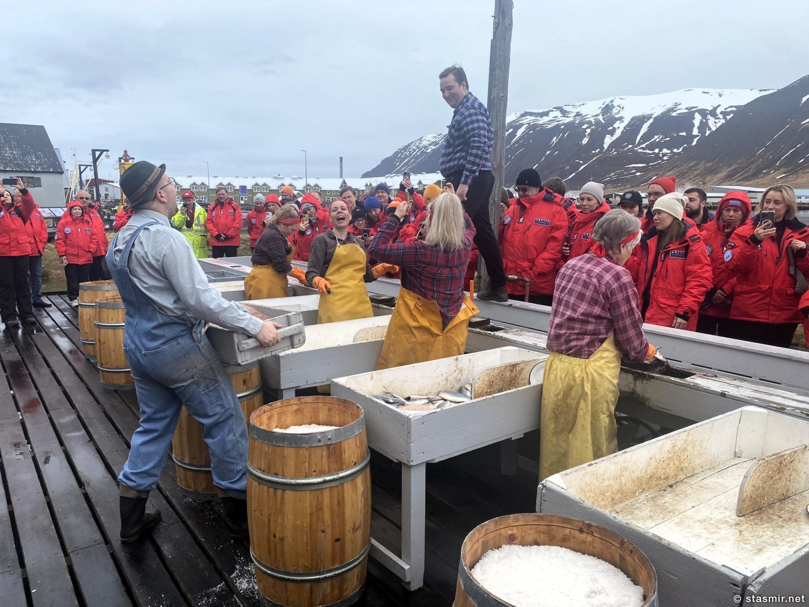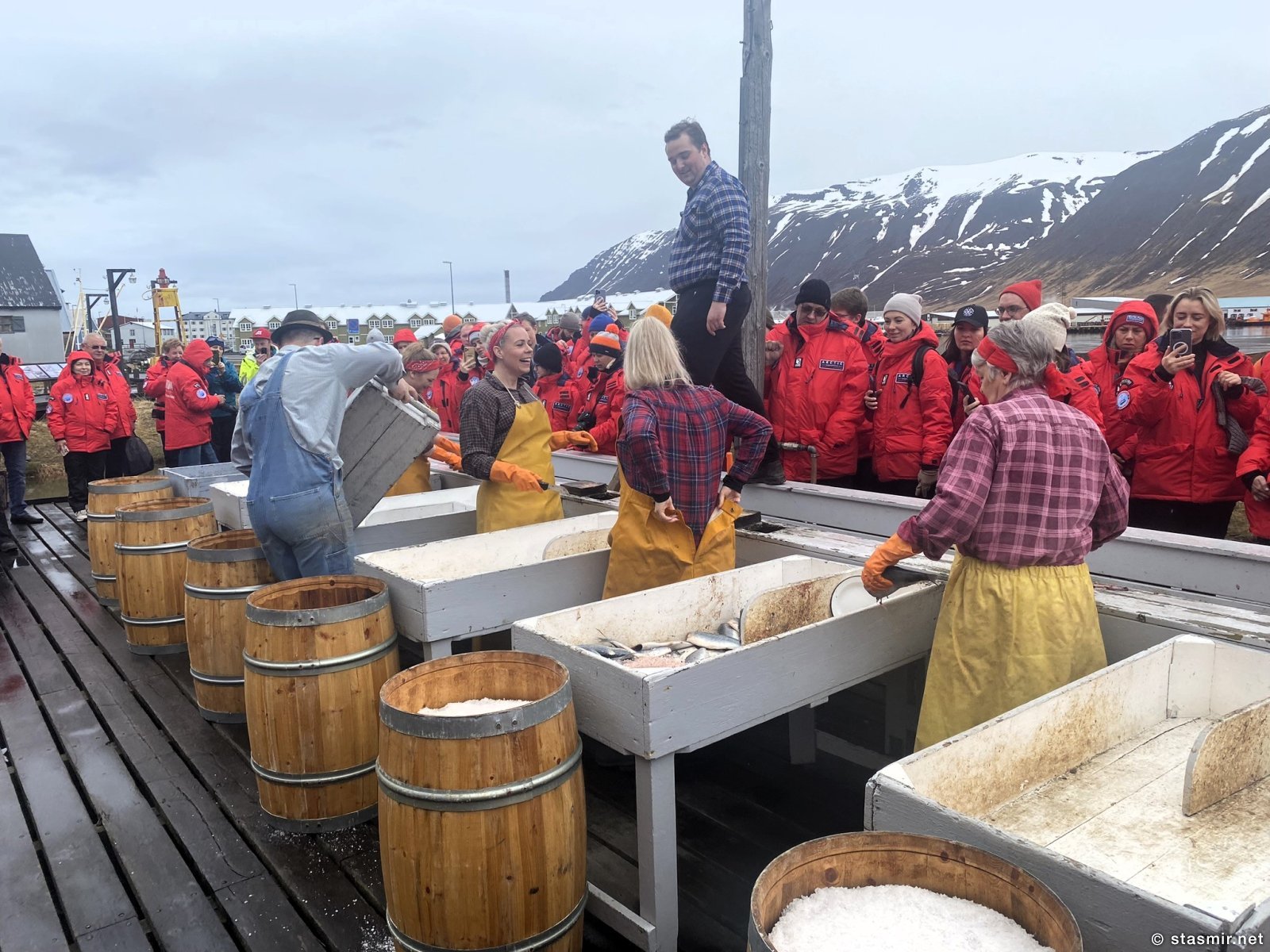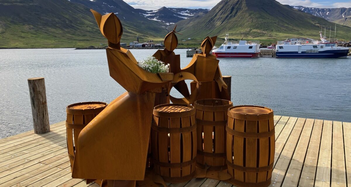 - Потом селедка кончилась, опустели моноселедочные моногорода, на память осталась. В том числе о síldarstúlkur – селедочных дивчинах. Сегодня Исландия зарабатывает на туризме больше, чем на морепродуктах, при этом громогласно страдая от overtourism – избыточного туристопотока. Поток этот надо куда-то перенаправлять, а экспозиция селедочной эры выше всех похвал. К слову, на недавно открытый монумент селедочным барышням было выделено 15 миллионов крон – примерно 100000 евро, а потрачено было вдвое больше. Монумент был изготовлен силами местной металлообрабатывающей промышленности из материалов, способных противостоять погодным условиям в северной Исландии.