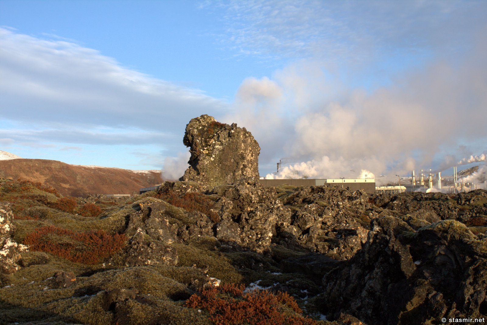 Не стану вдаваться в подробности, но толчки и тепловизионные съемки свидетельствуют о том, что трещинный вулкан образуется где-то к северо-западу от горы Торбьёрн, что аккурат между городком и Голубой Лагуной. Для Гриндавика готовы планы эвакуации, в город на всякий случай привезли мощные генераторы. Голубая Лагуна, в точнее электростанция при ней, снабжает электричеством и горячей водой полуостров, а также металлургический комбинат на въезде в Рейкьявик.
