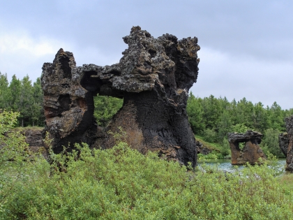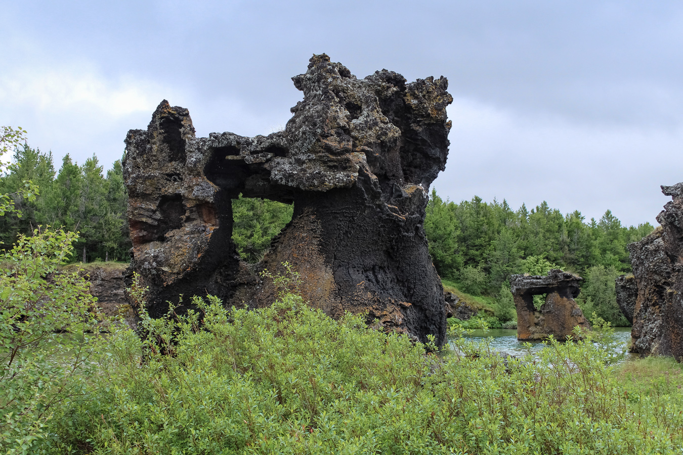 Путешествие можно начать с китового сафари из Хусавика – мировой столицы «китоведения» – причем на настоящей деревянной шхуне. Затем нас ждет весь удивительный набор столь не похожих на юг красот: радужный Водопад Богов и подавляющий неземной мощью Деттифосс, запечатленный в фильме «Прометей», озеро Миватн со своими псевдократерами и таинственными темными замками Диммуборгир. Я называю Диммуборгир «лавовой готикой»: в недрах этой огромной территории, загроможденной причудливыми лавовыми формациями, имеется даже готическая церковь!