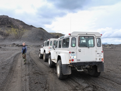 Остается добавить, что плато Ландманналёйгар находится на высоте 600 метров над уровнем моря. И что – если Вы не побывали в исландском высокогорье, Вы не бывали в Исландии. И что турфирмы молчат о специфике этого путешествия. В чем есть свой резон: у него нет стандартной конфигурации. Все зависит от полноводности рек, погоды, таяния ледника, состояния дороги или ворчания страшной буки Геклы, а также длины светового дня и пожеланий клиентов. И что внедорожный компонент этого путешествия – большие колеса, мощные джипы – заслуживает отдельной мессы. Пристегнулись? Тогда поехали!