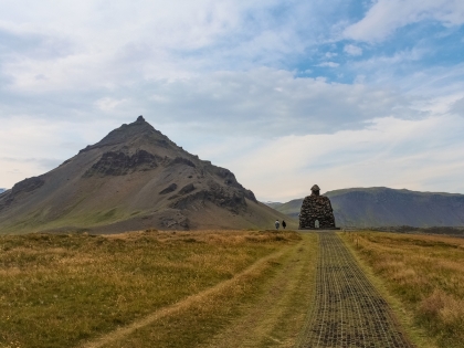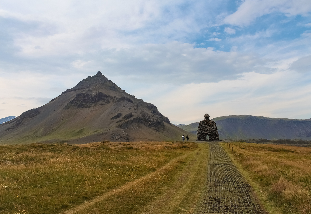 Мы объезжаем полуостров по западной оконечности, посетив еще один кратер вулкана. Одной из обитательниц этих мест была некая Гудридур – вторая жена участника экспедиции Лейфа Эрикссона в Америку, но первая, как неполиткорректно гласит мемориальная табличка, «белая женщина», родившая европейца на американском континенте. Гудридур умудрилась хорошо попутешествовать на своем жизненном пути: мало ей Америки, так она еще стала первым исландцем, побывавшим на аудиенции у папы Римского!